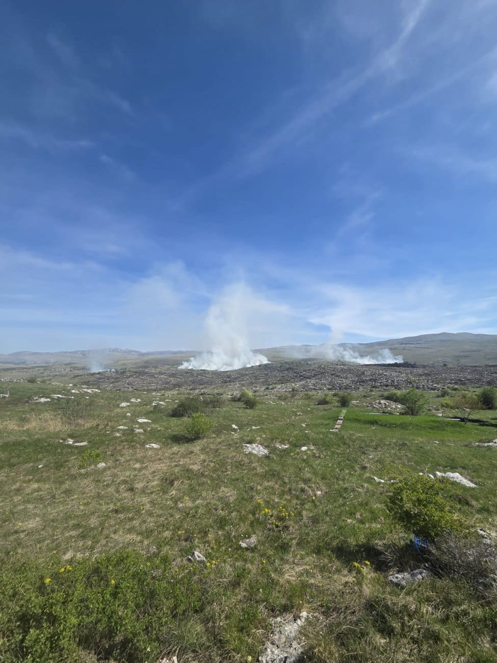 Vatrogasci i dalje dežuraju na požarištu, a daljnji razvoj situacije ovisit će o vremenskim uvjetima i eventualnom jačanju vjetra.