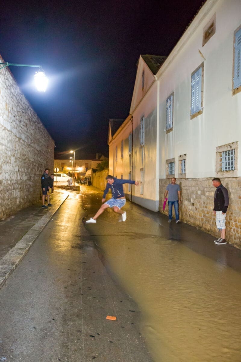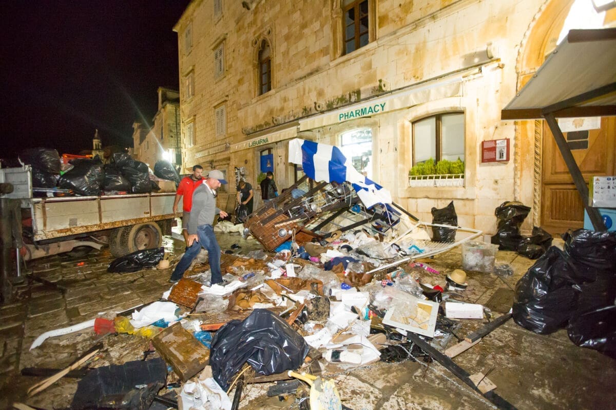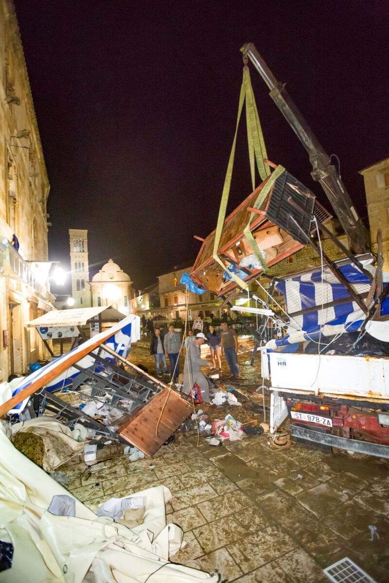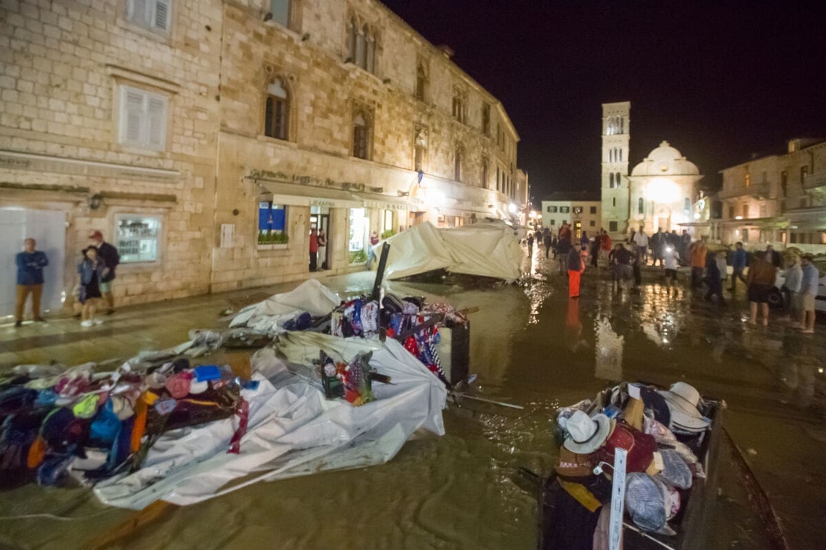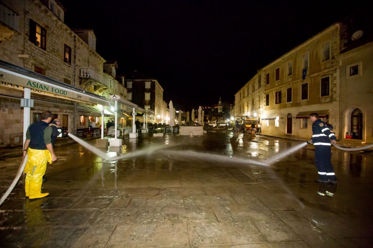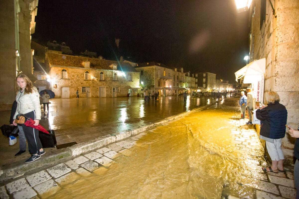 Kišno nevrijeme zahvatilo je grad Hvar i njegovu okolicu između 17 i 20 sati kada je palo stotinjak litara kiše po kvadratnom metru. Velika količina oborina u kratko vrijeme preplavila je ulice Hvara, pa su zabilježene brojne vatrogasne intervencije ispumpavanja vode.
