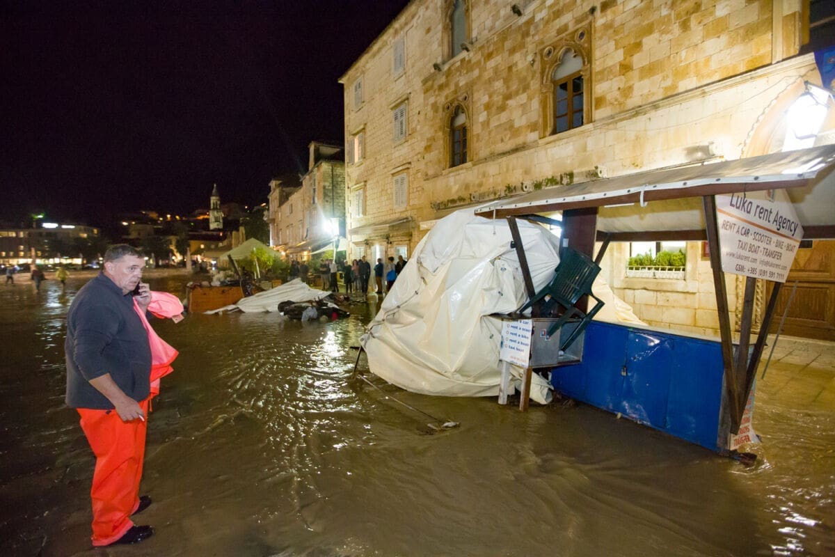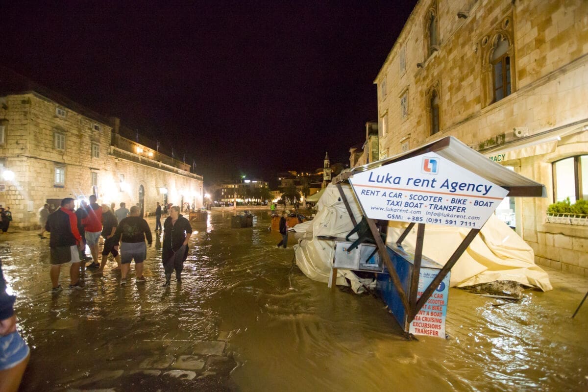 Utorak je donio nestabilne vremenske prilike u dijelu Dalmacije. Nakon što je u jutarnjim satima kišno nevrijeme zahvatilo sami jug Dalmacije gdje je mjestimice palo i preko 200 litara kiše po metru kvadratnom u kasnim popodnevnim i večernjim satima nevrijeme je zahvatilo dijelove otoka Hvara.