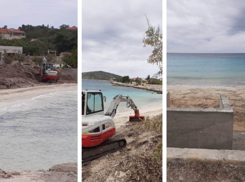 Jedan takav primjer nam stiže s Drvenika Malom. Naime, čitateljica Dalmacije Danas nam je poslala fotografije plaže Vela Rina gdje je vidljivo kako se ispred ugostiteljskog objekta grade betonski zidovi.