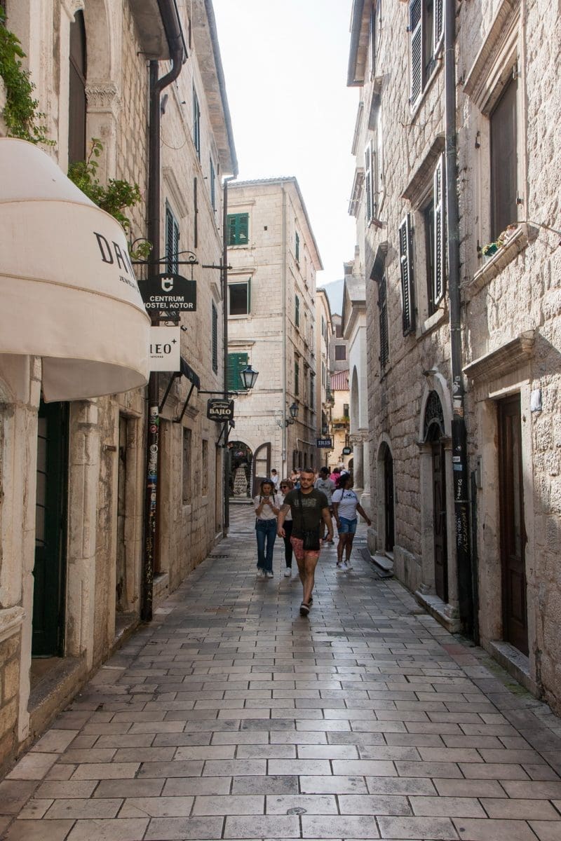 Pet minuta hoda i eto nas pred ulazom u stari grad, vrlo sličan Dubrovniku u malom. Zidine, tvrđave, zbijene ulice, mnoštvo crkava većih i manjih raznih religija, muzeja, ateljea, mnoštvo kafića, restorana i konoba. Cijene usluga, pa ajmo reć blago povišene do povišene, ali ipak je to sama srž Kotora. U biti najgore šta vas može spriječiti da istinski uživate u razgledanju grada je horda turista koji izlete iz kruzera i napune taj mali prostor za tili čas. A u Kotoru su kruzeri domaće živine tj non stop je jedan vezan na pristaništu a dva čekaju u fermi na sidru negdje po zaljevu. Osim samog gradića za vidjeti možete, a i ispenjati ako želite i ako ste u kondiciji, nekoliko vidikovaca koji su usklopu obrambenih zidina, kula i crkvica oko cijelog mjesta. Pogled je fenomenalan, pogotovo ako se popnete na veće razine. Napomenuo bih da se ja nisam penjao iz nužde za preživljavanjem. Biće prilike sutra kad s autom odemo prema Lovćenu za bacit sliju, dvi.