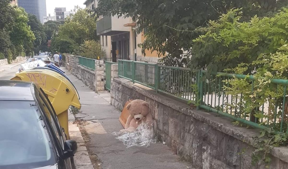 U splitskom kvartu Bol, na sred ceste, osvanuo je ogromni plišani medo kojeg se njegova, pretpostavljamo vlasnica, odrekla.
