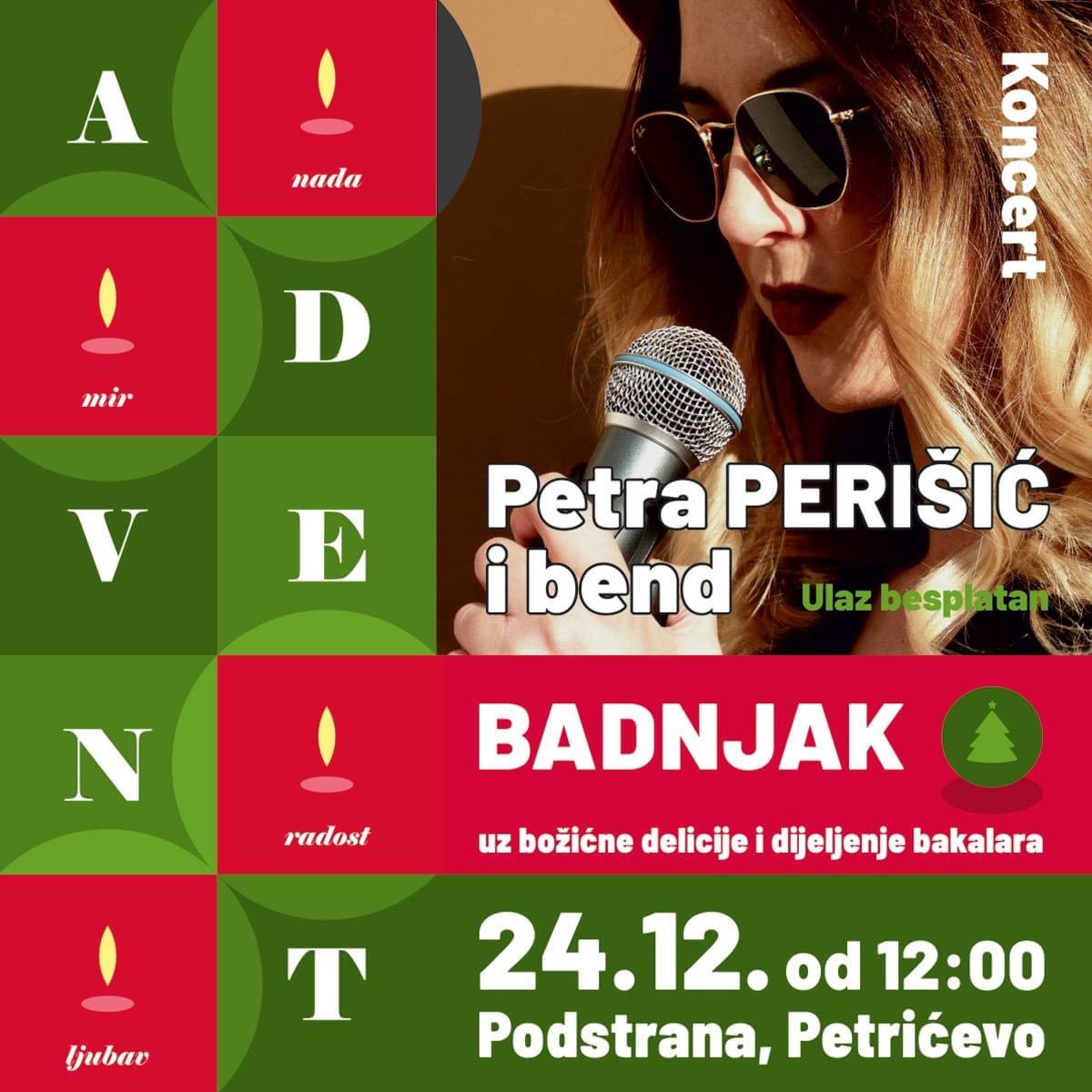 Središnje događanje održat će se u Petrićevu, gdje će od 12 sati posjetitelje zabavljati Petra Perišić i njezin bend. Uz zvuke božićne glazbe, posjetitelji će moći uživati u besplatnom bakalaru i raznim božićnim delicijama.