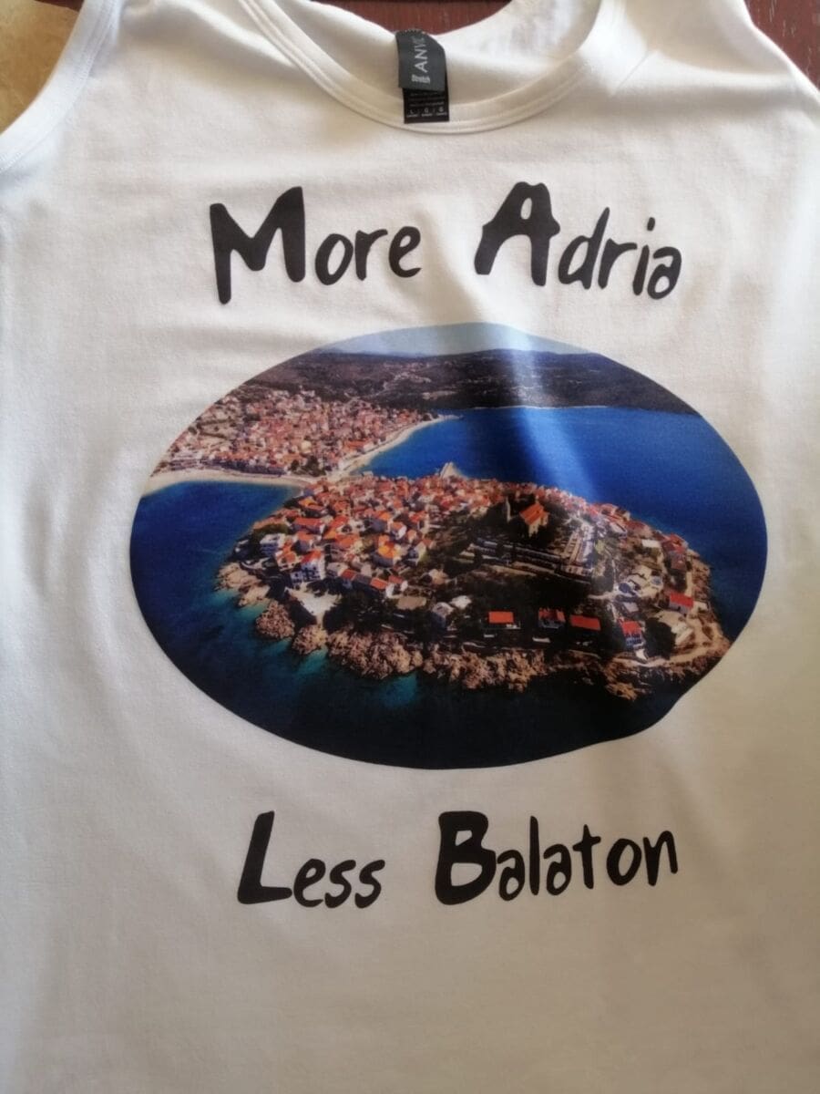 No, njegova poruka "Less Adria..." nije najbolje prošla kod njegovih sunarodnjaka, barem sudeći prema onome što smo danas zatekli u Primoštenu. Naime, kako nam je kazao jedan prodavač majica na štandu, do njega su prije nekoliko dana došli mađarski turisti s molbom da im isprinta majice "More Adria, less Balaton".