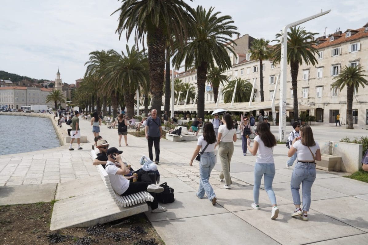 Tako su Splićani, ali i njegovi gosti odlučili sunčani dan iskoristiti za šetnju najpopularnijom splitskom šetnicom i baciti pokoju ćakulu uz omiljeni napitak. Čini se, kako su se i turisti prilagodili splitskom stanju uma, pa su klupice i zidiće iskoristili za malo 'ubiti oko' i upiti vitamina D.