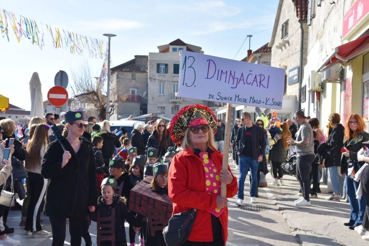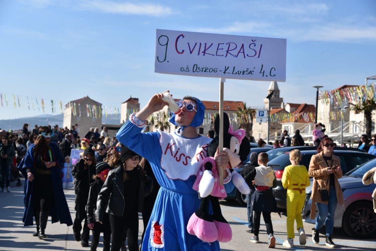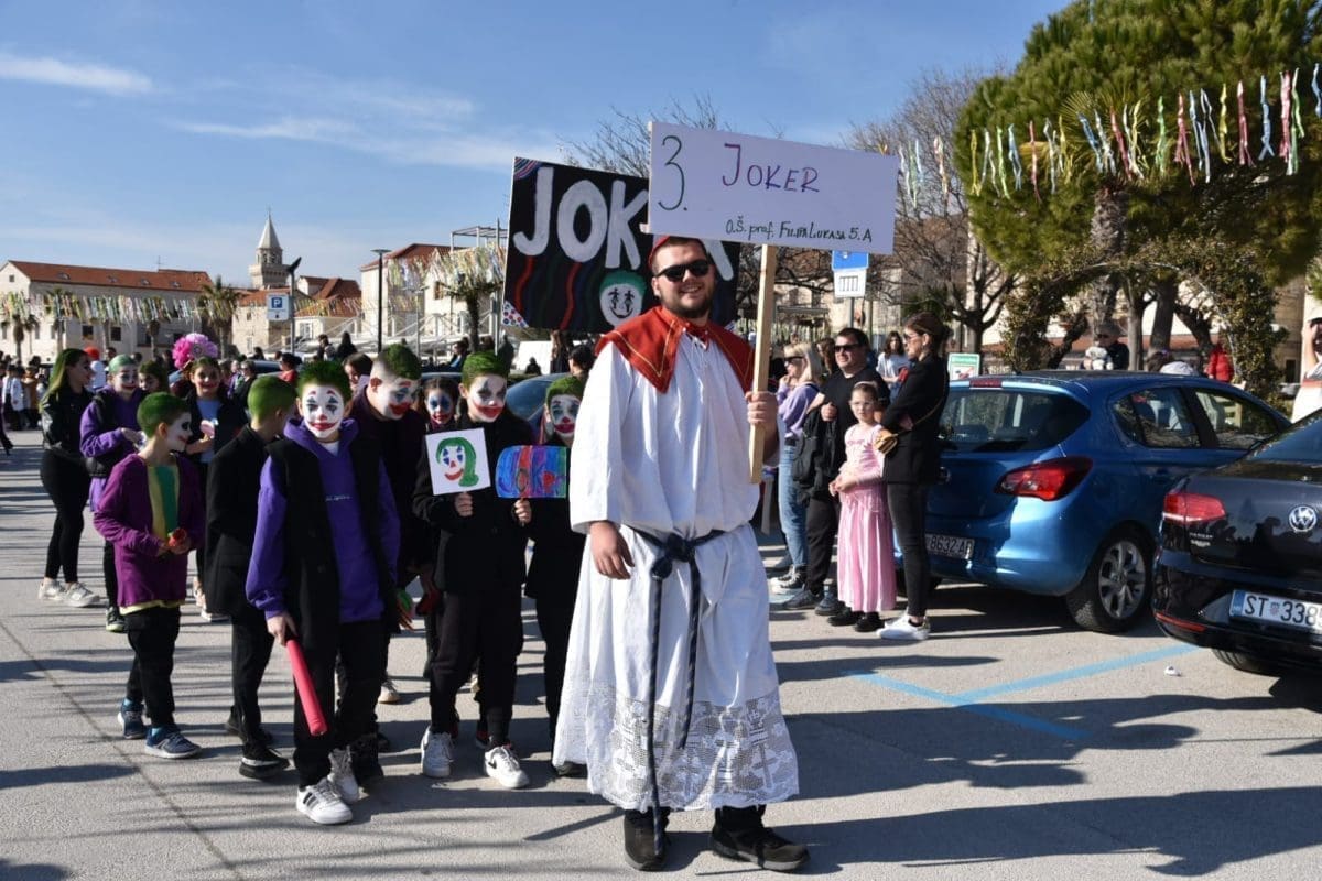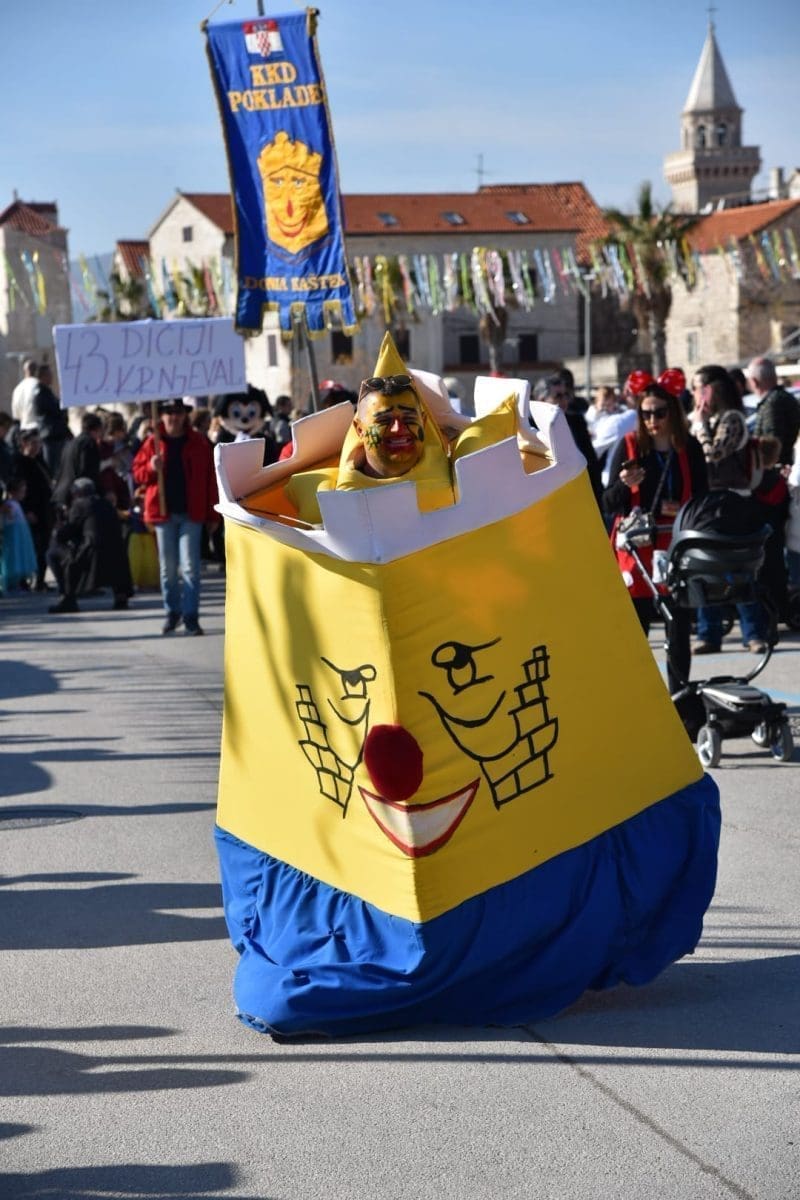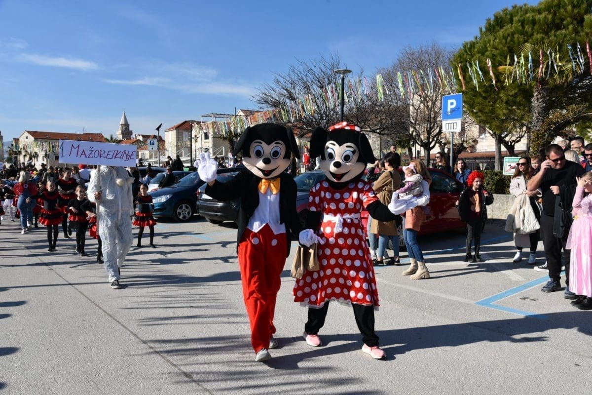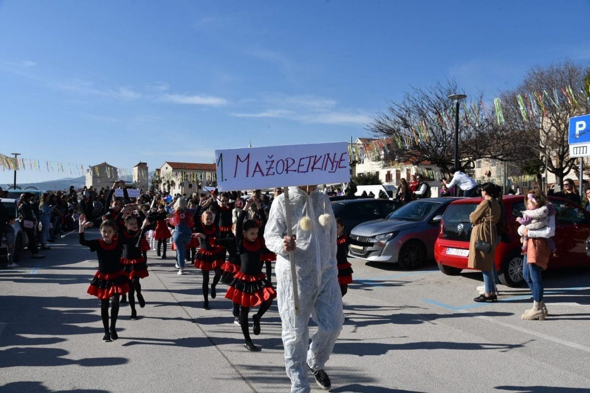 Kako to već tradicija nalaže na početku povorke našao se Miljenko Plemeniti s ključevima Grada, a pratila ga je kočija s Meštrom krnjevala te dičjom kraljicom Martinom Prkut. Njih su u stopu pratile Kaštelanske mažoretkinje koje već godinama svojim točkama uljepšavaju ovaj krnjeval.