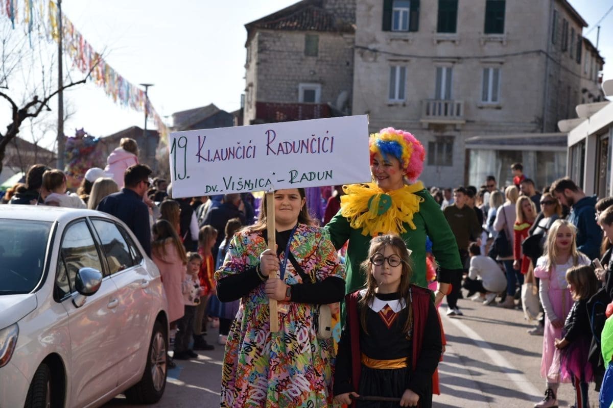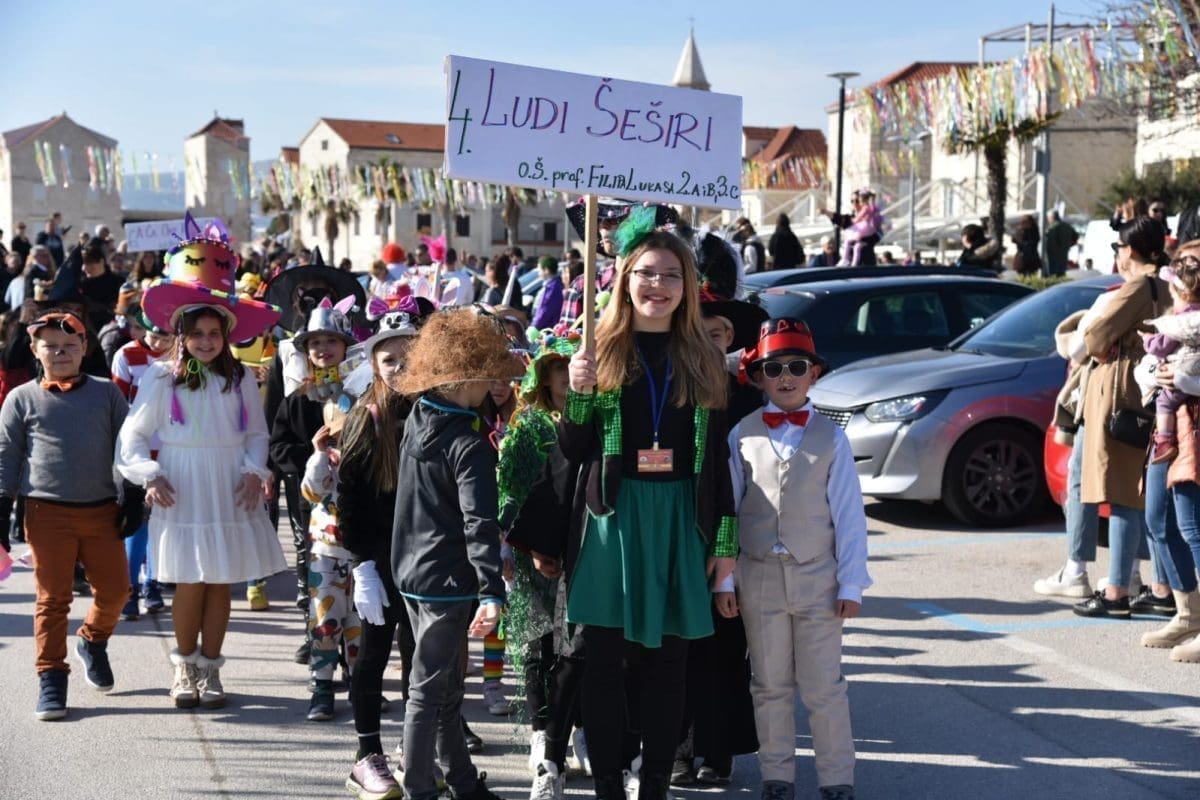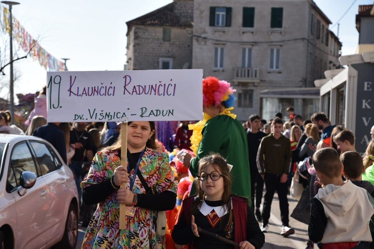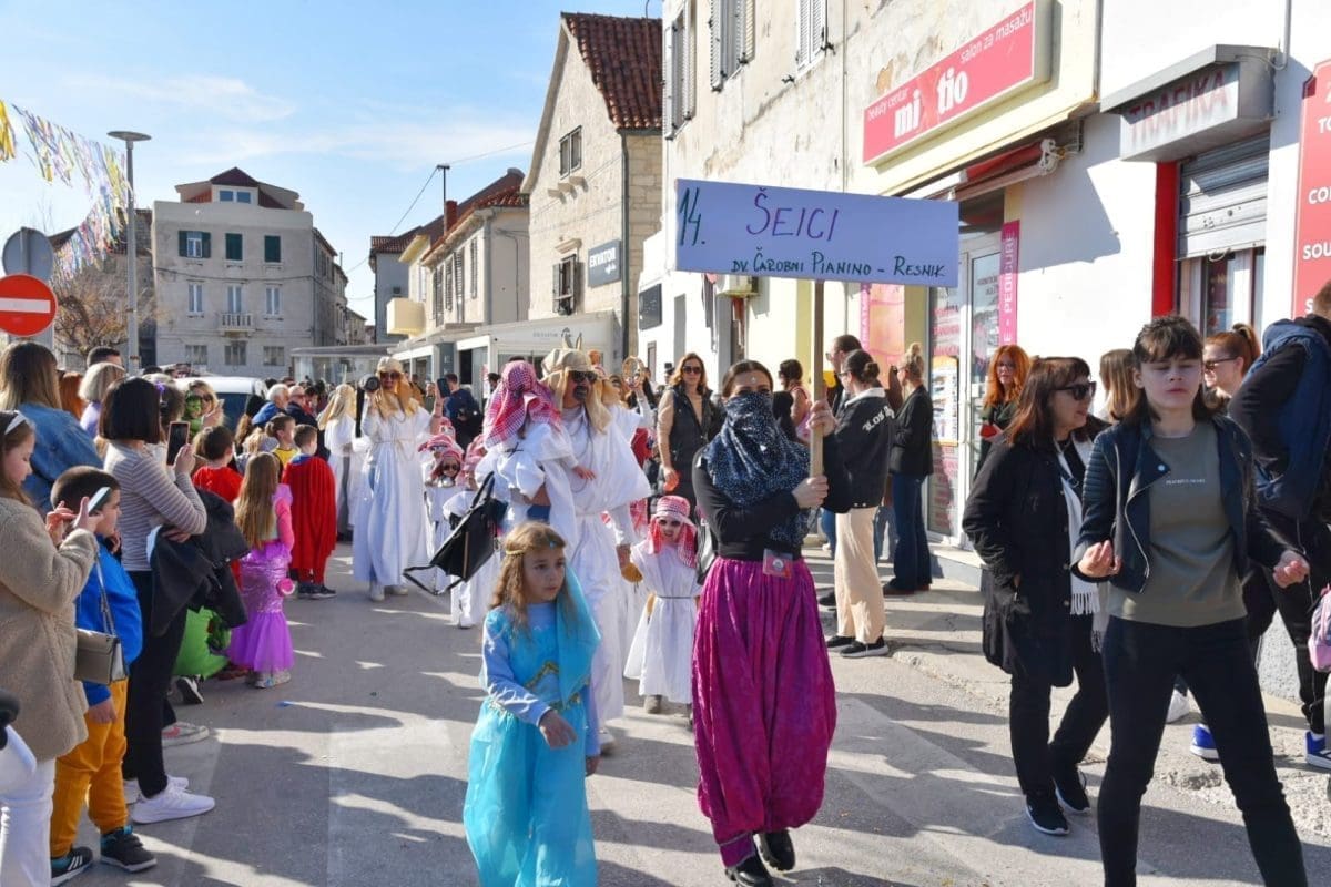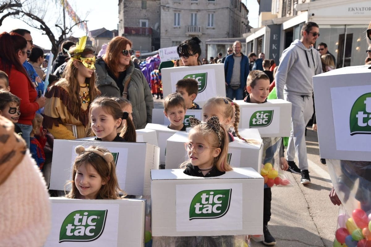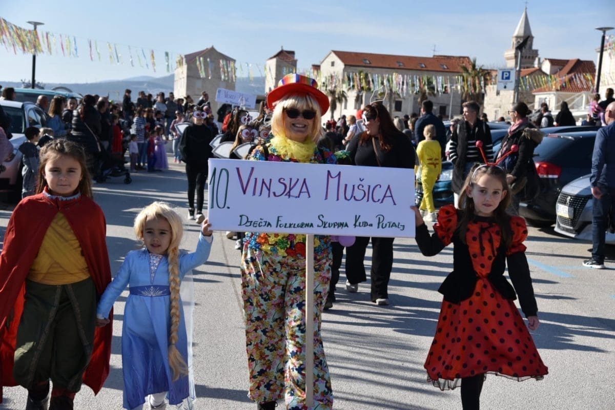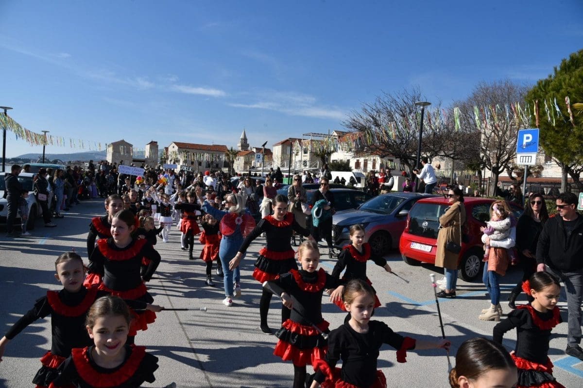 Kako to već tradicija nalaže na početku povorke našao se Miljenko Plemeniti s ključevima Grada, a pratila ga je kočija s Meštrom krnjevala te dičjom kraljicom Martinom Prkut. Njih su u stopu pratile Kaštelanske mažoretkinje koje već godinama svojim točkama uljepšavaju ovaj krnjeval.