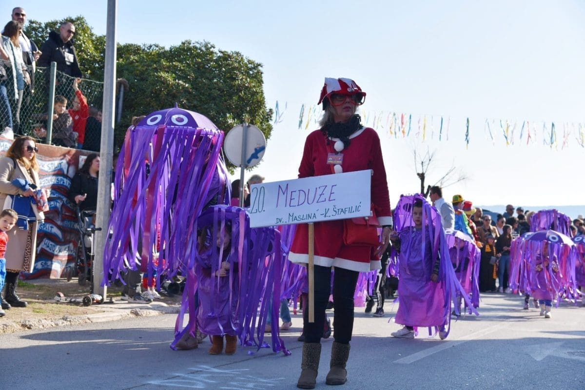 U samoj povorci sudjelovalo je preko 600 djece, a jedna točka je posebno privukla pozornost jer je u njoj sudjelovalo 160 djece koja su bila obučena u meduze. Radi se o dječici iz DV "Maslina" K. Štafilić, i vjerujte, bili su prekrasni u tako velikom broju.
