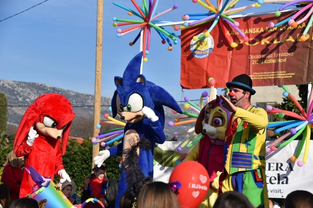 Na platou ex. Plavog Jadrana upriličen je zabavni program za sve sudionike te su podijeljene krafne i sokići za sve male maškarice. Posjetitelji su se, također, mogli družiti sa maskotama, uživati u face paintingu te se nasmijati uz klauna Šarenka.