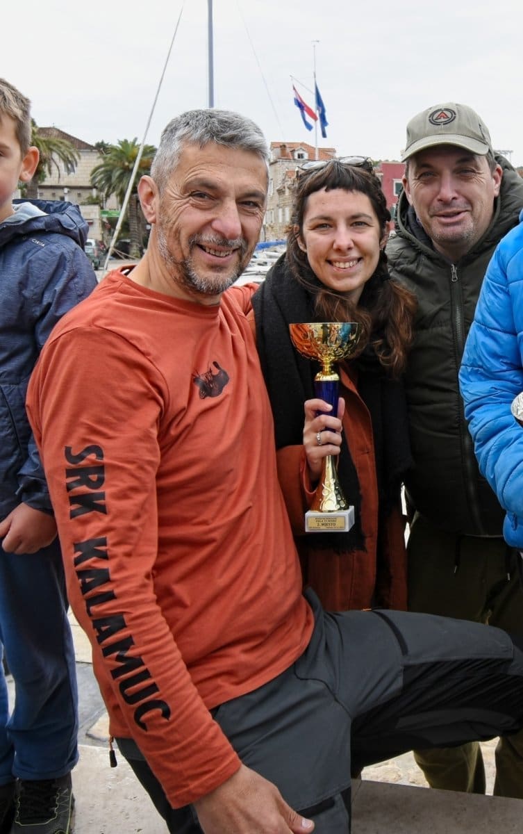 Najbolje plasirani u lovu štapom ili rukom iz brodice su ekipa DENIS I GORAN (otac i sin) s 1954 gr ulova, dok je član iste obitelji u drugoj posadi imao manje sreće jer je jedini danas ostao bez ostvarenog ulova. DENIS I GORAN osvojili su i nagradu za najvećeg arbuna od 172 gr kao i prijelazni pehar natjecanja koji je njihov sljedeću godinu dana. Drugoplasirana ekipa je SIĆ PUN RIBE (Dina, Dino i Franjo) s ulovom od 1830 gr i hobotnicom od 1900 gr koja odlukom organizatora nije ušla u ukupan zbroj ulova. Na trećem mjestu su ekipa DALMACIJA I SLAVONIJA (Nedo, Antonio i Emanuel) sa 1620 gr ulova dok se najveći kanjac koji je također dobio nagradu, našao u siću ekipe TRIO SIMPATICO (Eli, Ivan i Petar). Priznanja i prigodne nagrade podijelila je predsjednica kluba Tija Mlinac.