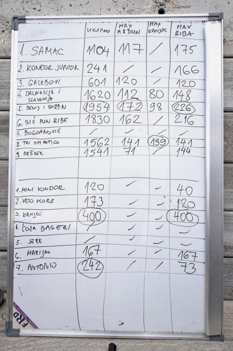 U juniorskoj konkurenciji najveći broj ulovljenih riba imao je Antonio Čengić, ukupno 242 gr, dok je veliko iznenađenje bio ulov najveće ribe u ukupnoj konkurenciji, komarče od 400 gr koju je ulovio s obale jedan od najmlađih natjecatelja kluba Branko Lamut. Sva djeca sudionici dobili su i prigodne poklon pakete.