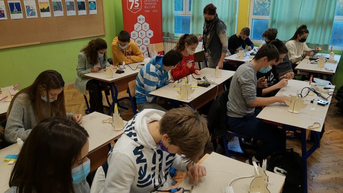 Radionice modelarstva i elektrotehnike su upriličene za učenike pet razreda, a vodio ih je Zvonimir Lapov-Padovan, voditelj radionica HZTK-e. Sudionici radionica su od lagane šperploče izrađivali noćna svjetla u obliku sove. Prema zadanom predlošku, učenici su prvo sastavili i zalijepili stiliziranu sovu, da bi nakon toga na tiskane pločice zalemili svjetleće diode i kontakte napajanja. Kako se radilo o istosmjernom strujnom krugu, đaci su morali paziti na polaritet baterije i trošila. U konačnom uratku, svijetleće diode su imale ulogu sovinih očiju. Na kraju radionice, uz naučeno, učenike je obradovalo i to što su svoje uratke mogli ponijeti sobom.
