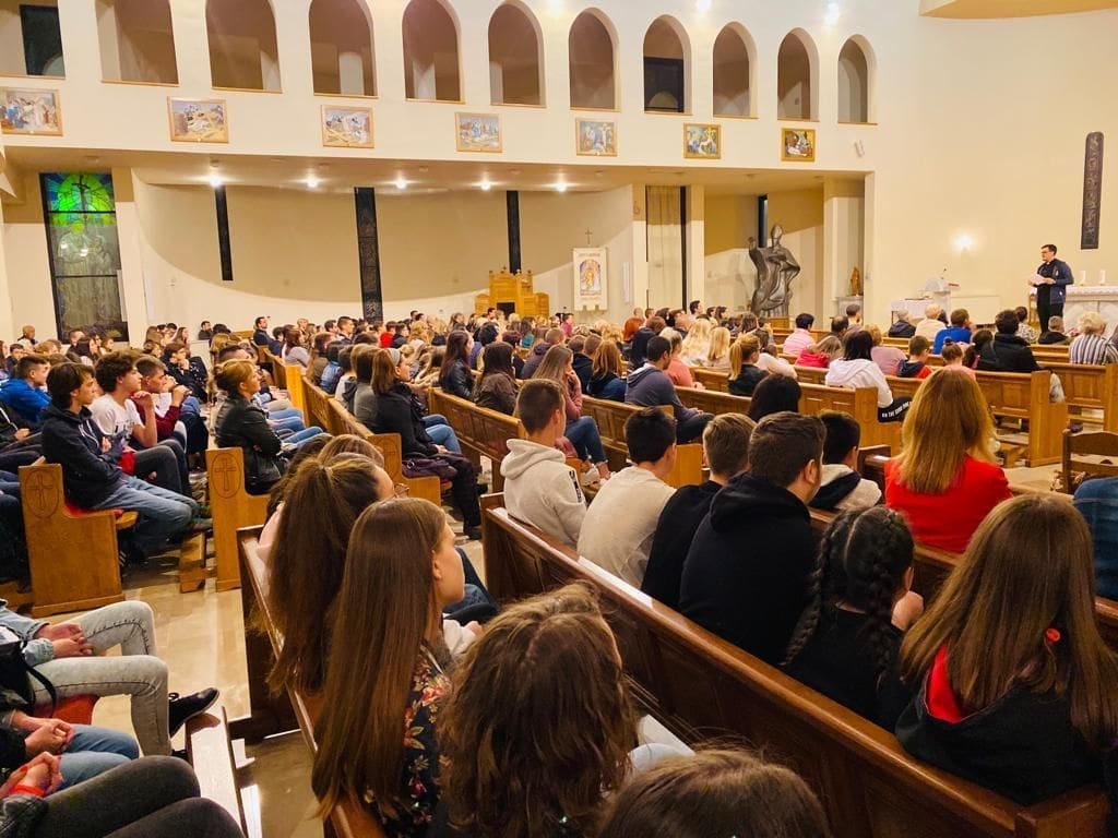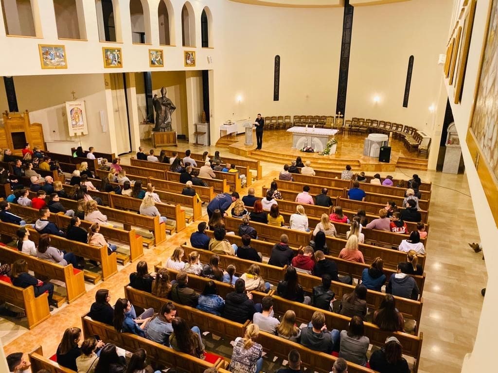 Zatim je uslijedilo drugo predavanje na temu „Svetost pobjeđuje“, a održao ga je župnik don Hrvoje Dragun koji je preko misli i primjera različitih svetaca istaknuo kako smo svi pozvani na svetost. „Naš temeljni cilj je biti svet, svetost je putokaz i temelj našega života te nas vodi u zagrljaj vječne Očeve ljubavi“, ustvrdio je župnik.