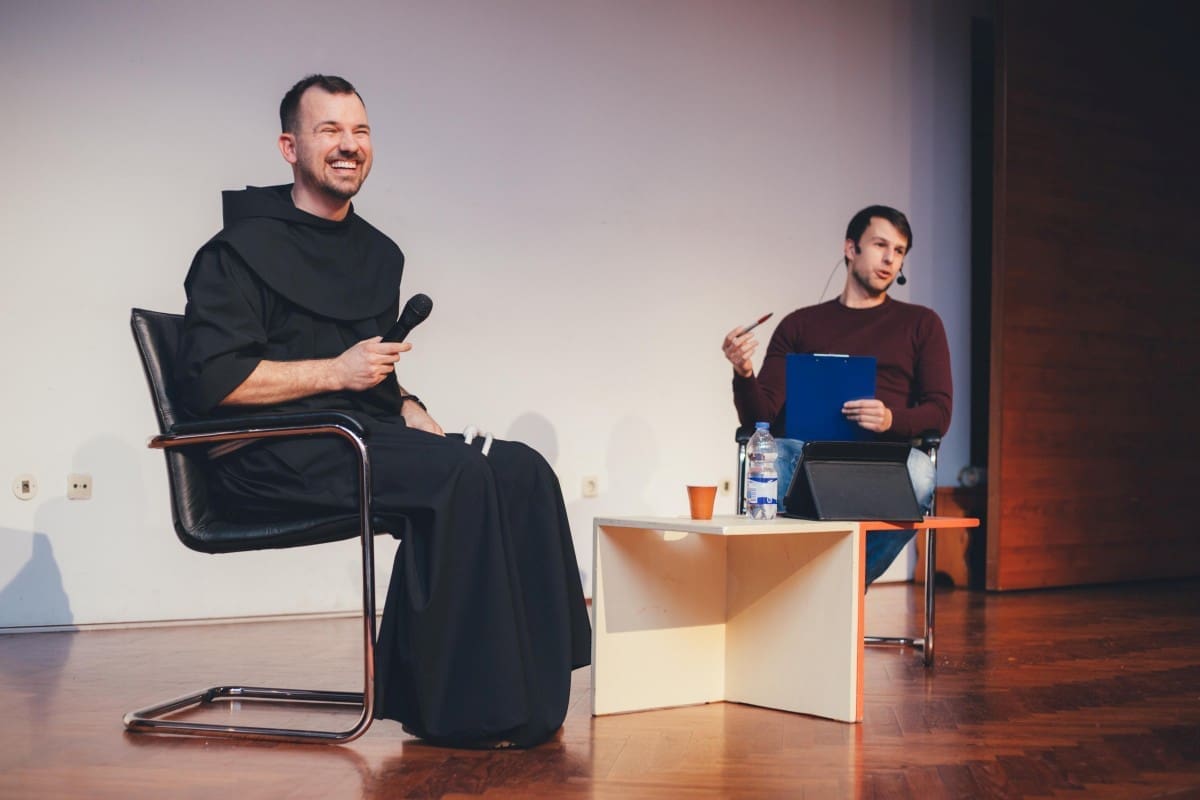 Fra Marin je strpljivo i simpatično odgovorio i na pitanja postavljena iz publike, a naravno i s par pjesama popratio cjelokupni susret.