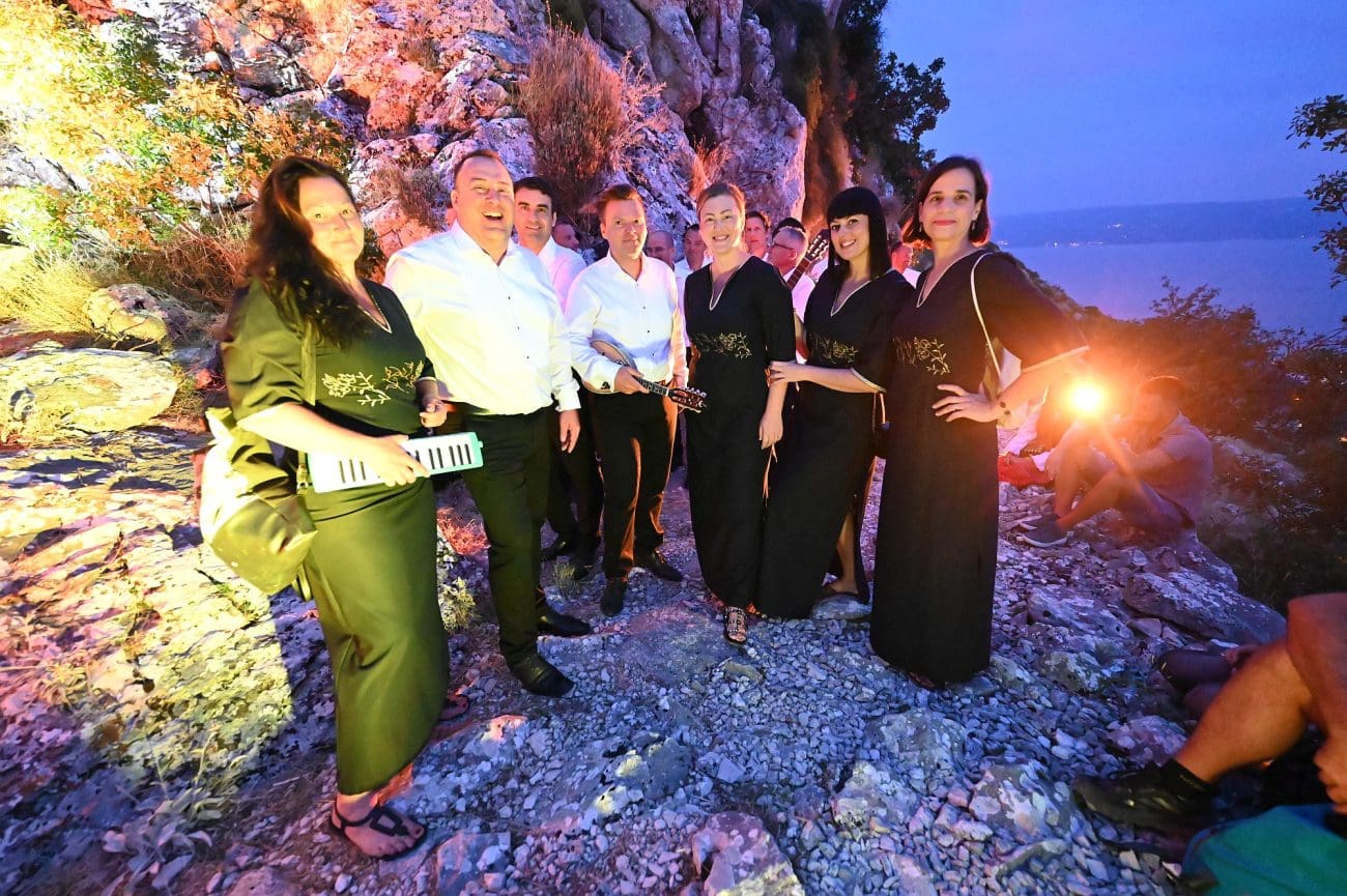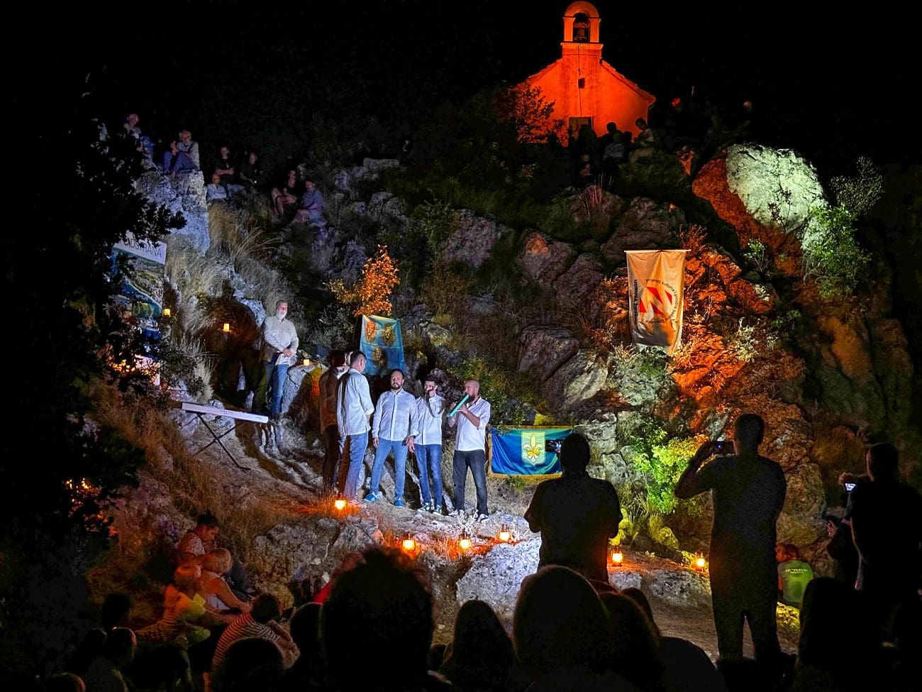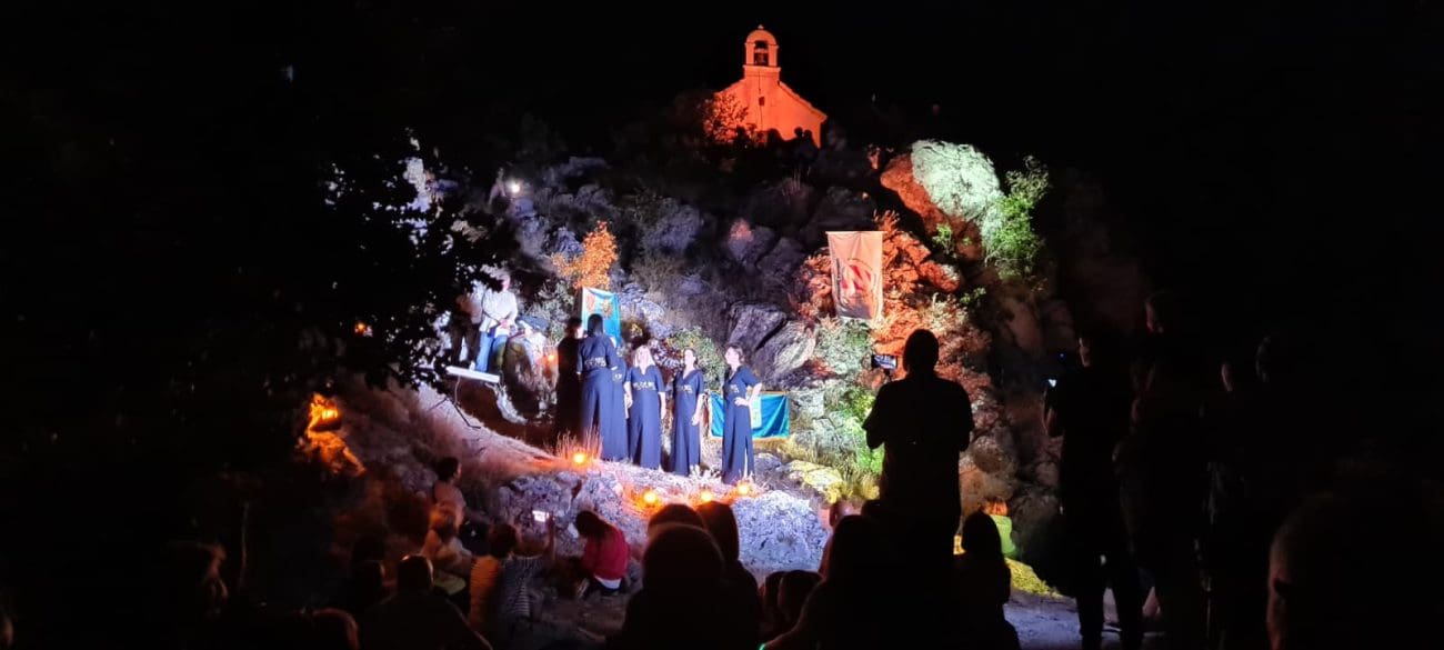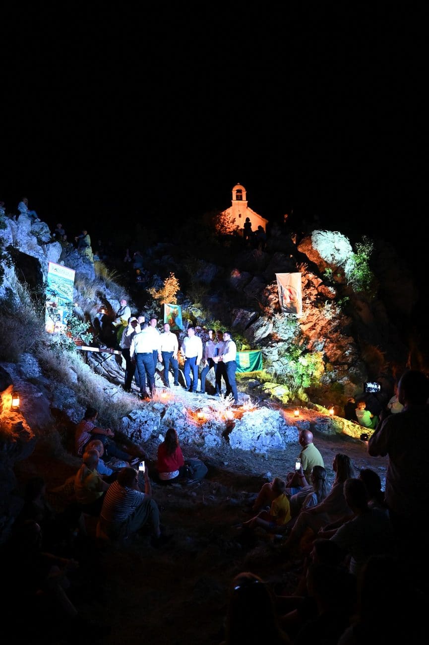 "Škrinja ljubavi"; "Dok Žrnovnica spava", "Serenada mandolini", "Kuća puna naroda", "Loza u škripu" samo su neke od pjesama u kojima su uživali posjetitelji koji su sjedili na putu i na stijenama oko crkvice, a vrhunac večeri bio je zajednička izvedba evergreena "Cvijet čežnje".