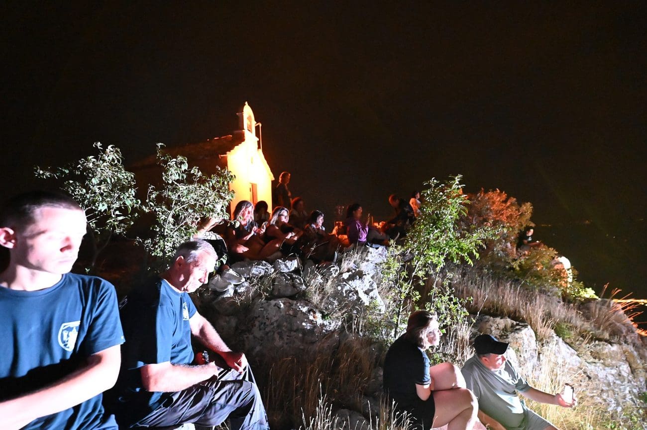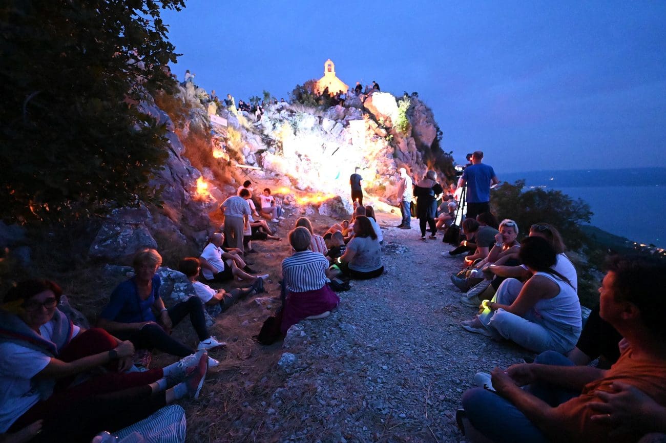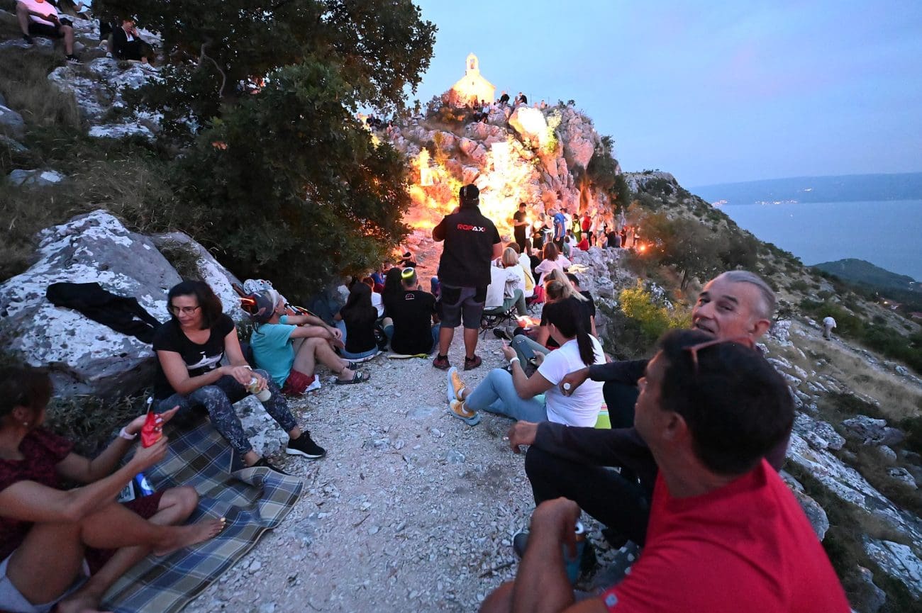 "Škrinja ljubavi"; "Dok Žrnovnica spava", "Serenada mandolini", "Kuća puna naroda", "Loza u škripu" samo su neke od pjesama u kojima su uživali posjetitelji koji su sjedili na putu i na stijenama oko crkvice, a vrhunac večeri bio je zajednička izvedba evergreena "Cvijet čežnje".