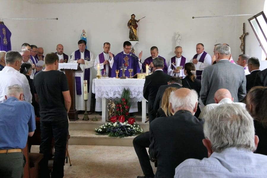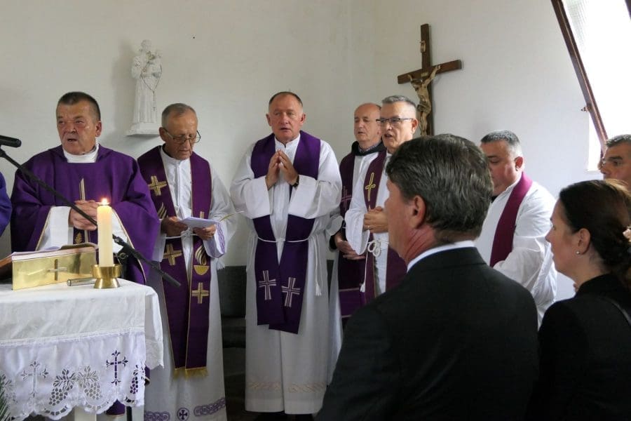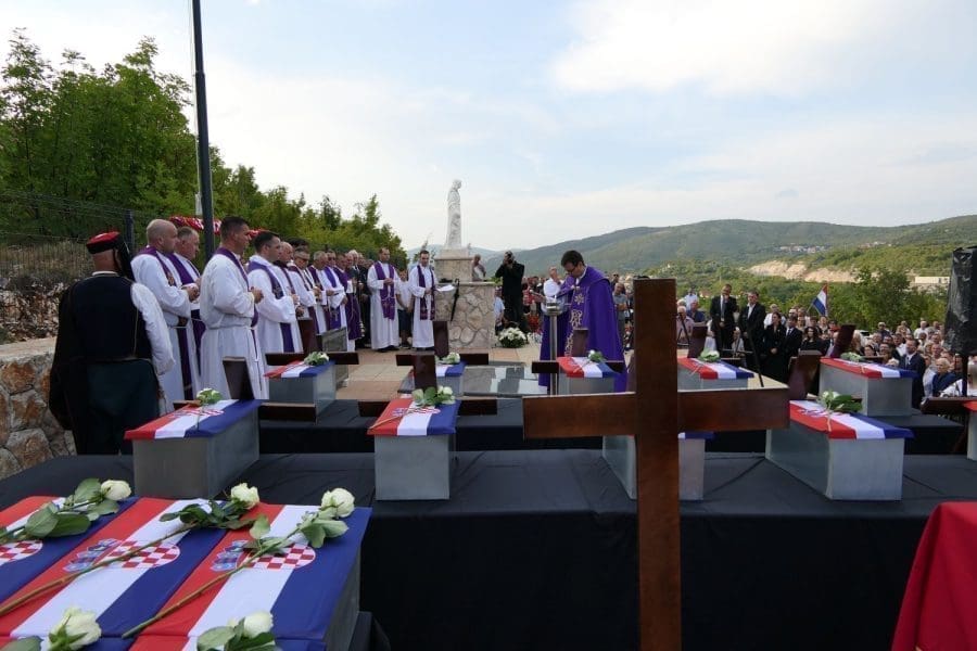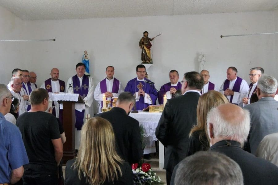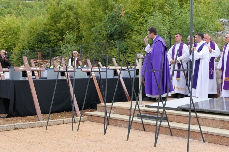 Zahvalio je Bogu što danas na ovom mjestu vidi ne samo jednog Jeremiju koji je došao pomoliti se, zaplakati i suosjećati, već veliko mnoštvo Jeremija što je znak nade i svjedočanstvo da zločinci nisu imali zadnju riječ i da nisu uspjeli u tome da naše drage pokojnike zatru da ih nitko više nikad ne nađe. „Bog ih je sve ove puste godine nosio u svome srcu. Prorok Jeremija i drugi sveci molili su za njih. Bogu hvala došao je dan kad smo našli njihove kosti.“