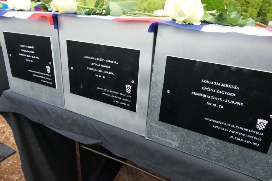 Ministarstvo je temeljem Zakona o istraživanju, uređenju i održavanju vojnih groblja, groblja žrtava Drugoga svjetskog rata i poslijeratnog razdoblja i prikupljenih vlastitih saznanja, od 19. do 27. listopada 2018. godine, provelo probna iskapanja i ekshumacije na području općine Zagvozd u Splitsko-dalmatinskoj županiji. Na tri lokacije: „Jerkuša“, „Mavića ograda“ i „Sudišće kod bora“ ekshumirani su posmrtni ostaci 30 žrtava Drugoga svjetskog rata. Prema zaprimljenim saznanjima međuresornih institucija žrtve su dovedene na lokaciju Jerkuša s područja Imotskog, Vrgorca i Makarske te su ubijene i bačene u tri jame 11. studenoga 1944. godine. Ministarstvo je provelo postupak identifikacije i pritom utvrdilo identitet 10 osoba: Petar Vrdoljak, Lovor Dujmović, Stjepan Bitanga – Ćipa, Ivan Škeva, Josip Zdilar, Nediljko Lasić, Mate Pavlinović – Bimbo, Bartol Ciciliani, Mijo Rudež i Ivan Iće Gabelica Procipović.