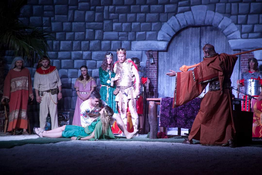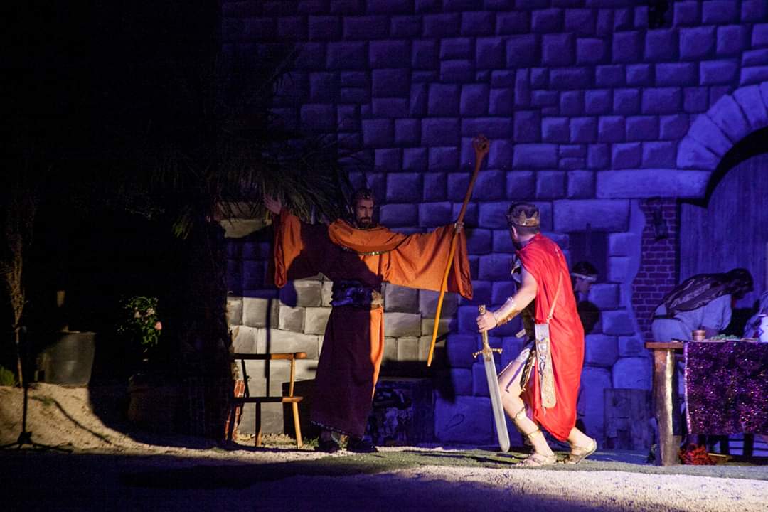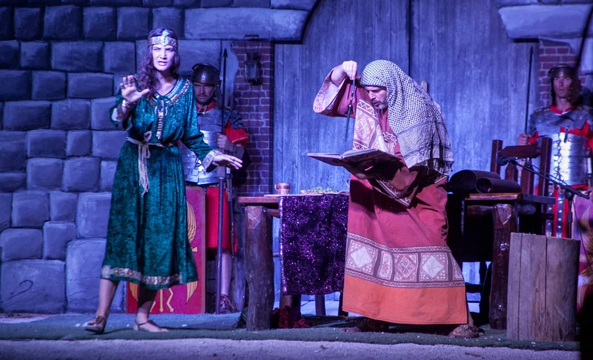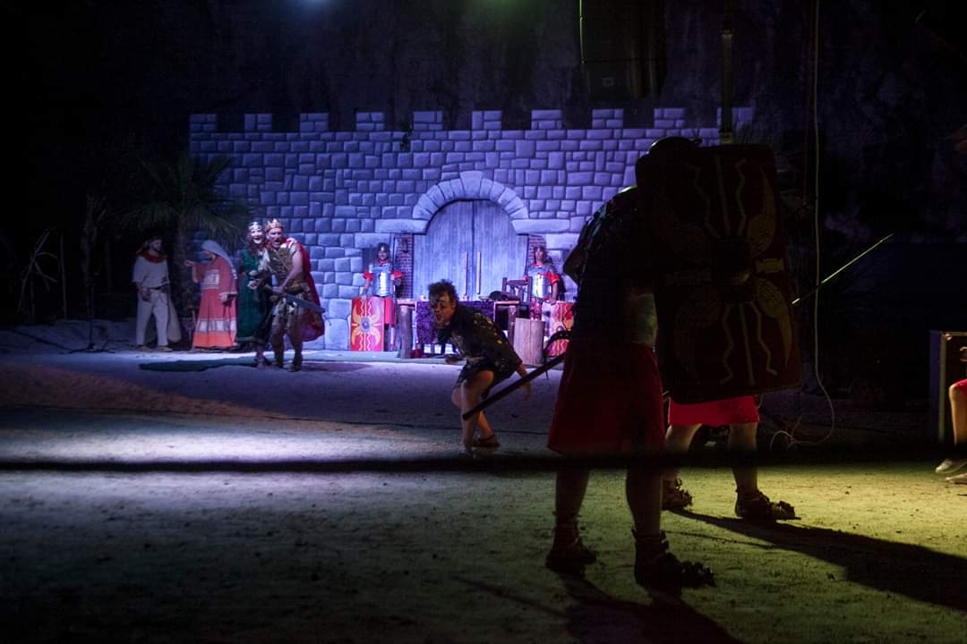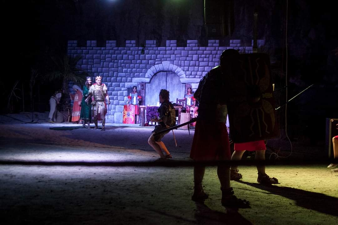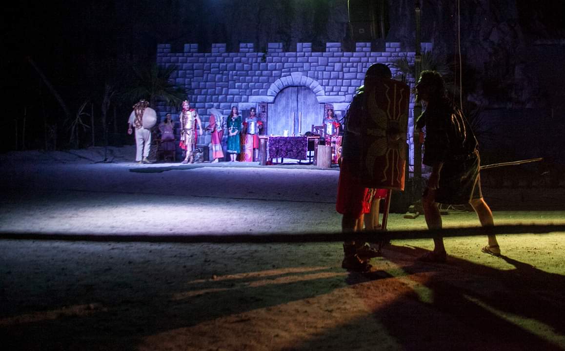 Scenski spektakl odvija se na čak dvije pozornice, a svaka je dugačka deset metara. Jedna pozornica predstavlja Zmajev dvor, koji je ugostio likove praslavenske mitologije, a na drugom, Arturovom dvoru, dominiraju Rimljani, njihovi vojnici i mudraci s Istoka.