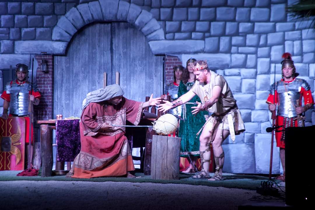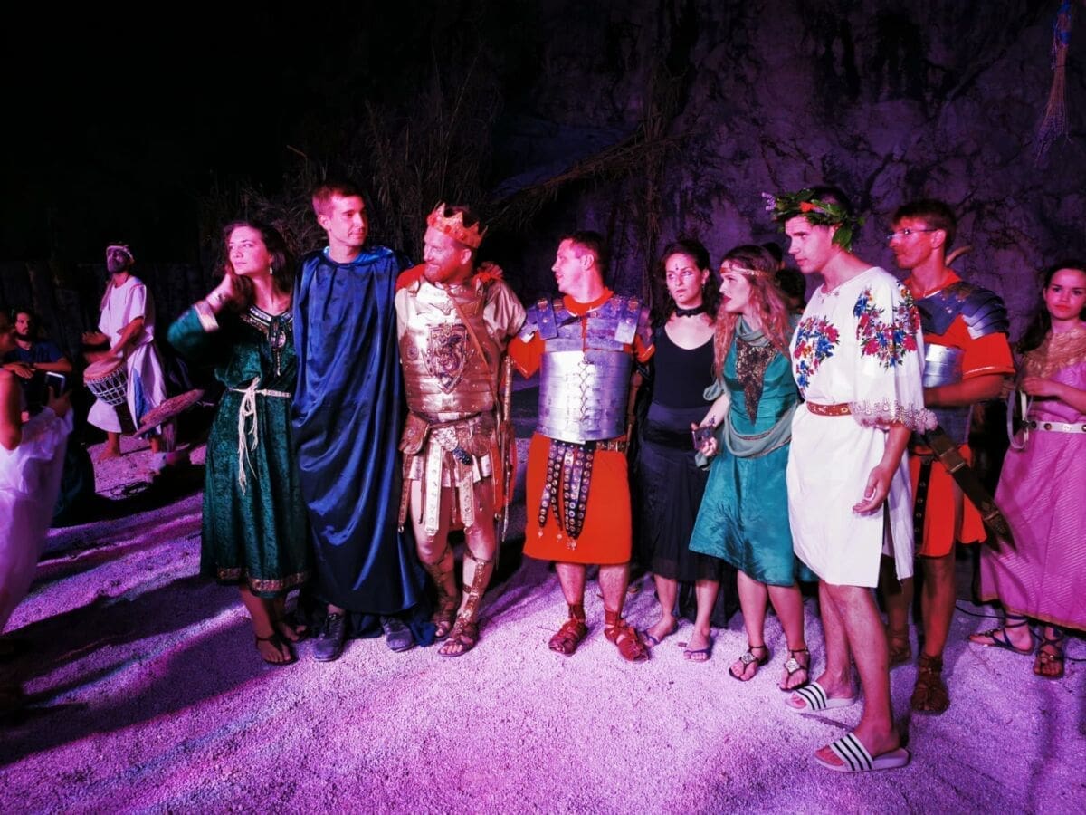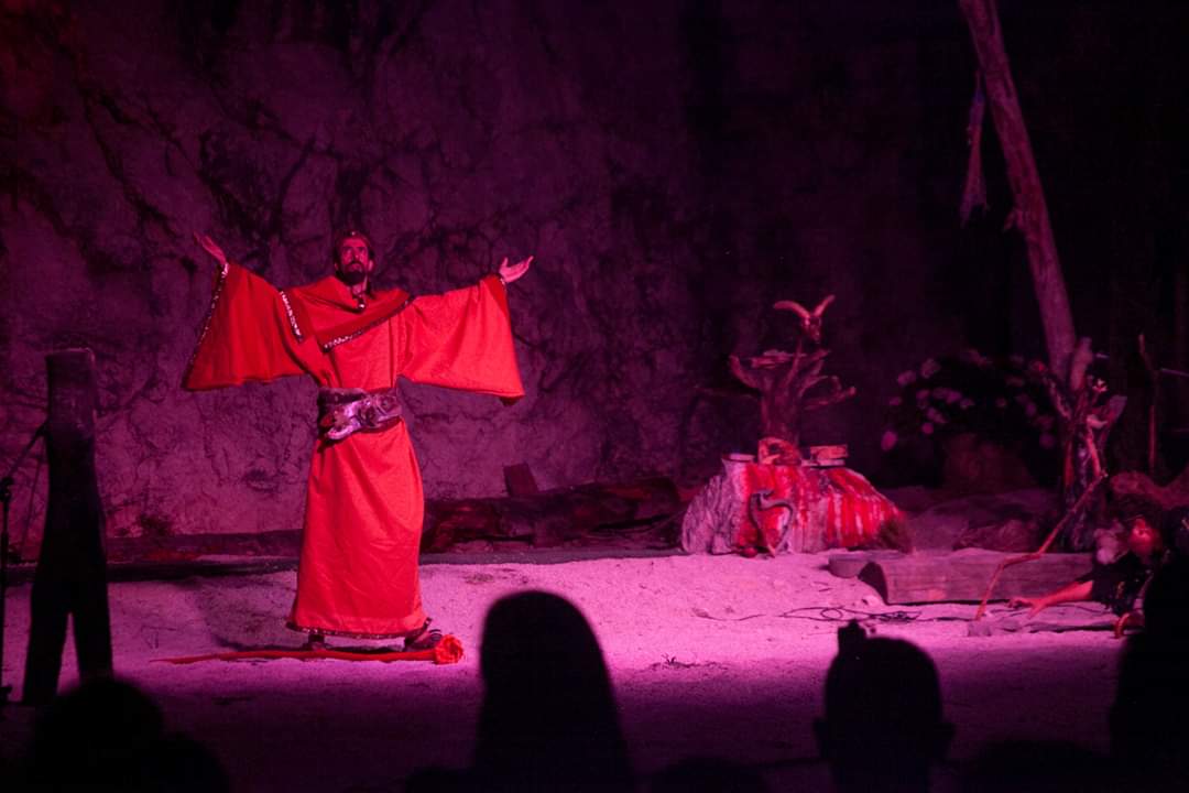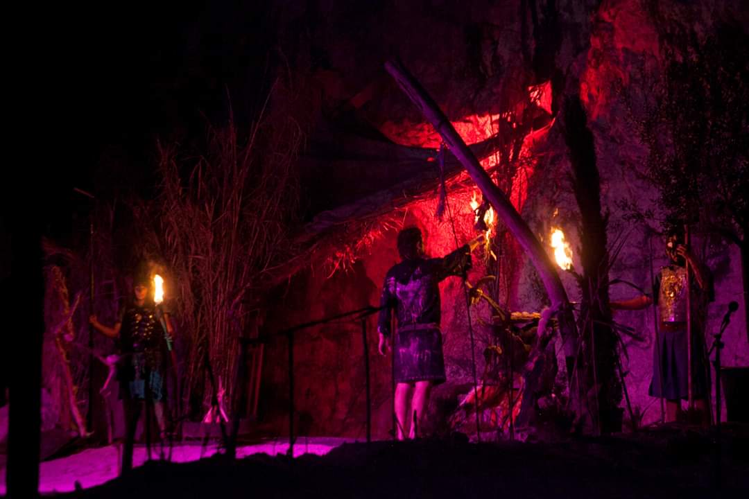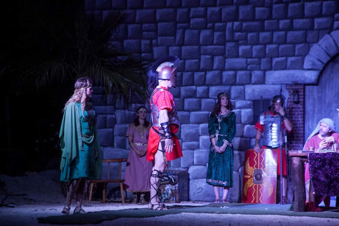 Scenski spektakl odvija se na čak dvije pozornice, a svaka je dugačka deset metara. Jedna pozornica predstavlja Zmajev dvor, koji je ugostio likove praslavenske mitologije, a na drugom, Arturovom dvoru, dominiraju Rimljani, njihovi vojnici i mudraci s Istoka.