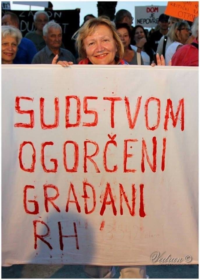 Ljudi me pitaju zašto mi je ovo tribalo. A ja se pitam zašto je ovo nama trebalo, da tražimo pravo na zdravi Split, čist zrak, vodu i tlo. Je l' to puno? Pitaju me je li prosvjedujemo zbog plana za gospodarenje otpada. Mi se borimo se za vlastiti život, pa tribalo nas je biti 25 tisuća. (Sramota, - netko je povikao iz publike).