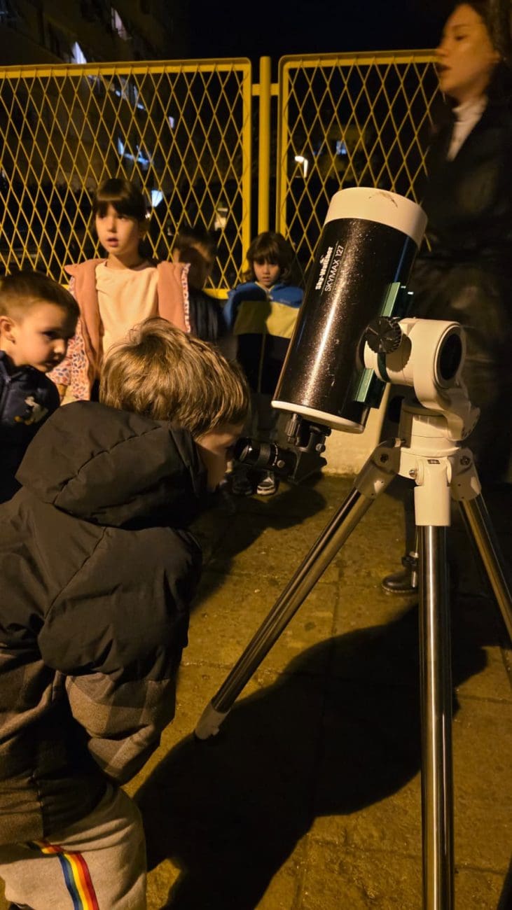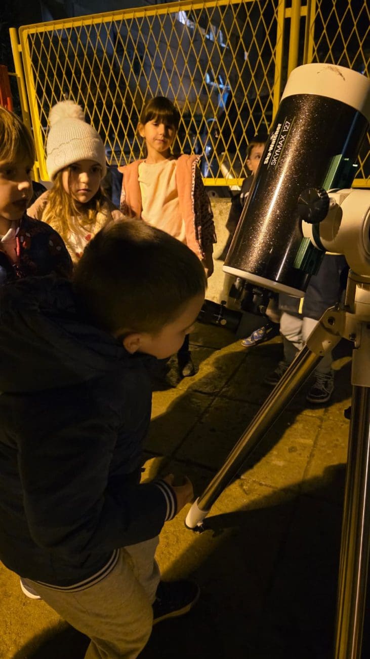 Nakon predavanja uslijedilo je astronomsko promatranje, tijekom kojeg su djeca imala priliku promatrati Mjesec kroz teleskop.