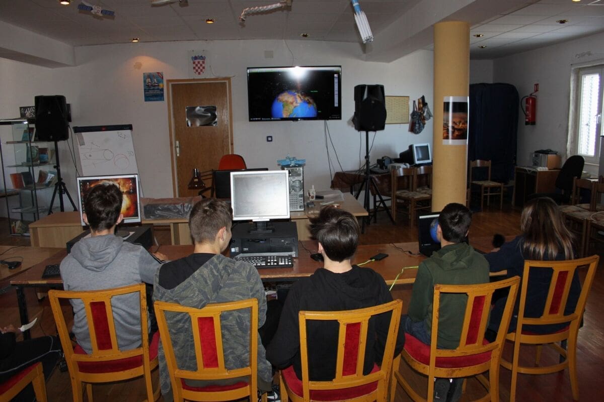 Četvrtog dana Proljetne škole, na rasporedu je bila astronomska radionica. U toj je radionici teleskop bio zamijenjen računalom: djeca su se učila rukovati jednim od brojnih planetarijskih programa, kojim se može simulirati izgled neba za proizvoljno izabrano mjesto na Zemlji – i izvan nje – i za zadano vrijeme. Praktična provjera stečenog znanja je uključivala pronalaženje sljedećih pomrčina Sunca, tranzita Merkura i drugih astronomskih pojava.