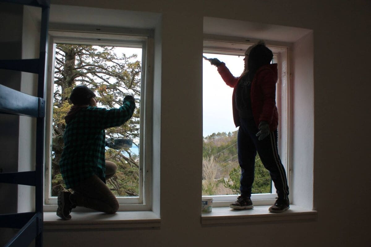 Ovog smo puta opiturali sva krila prozora (njih ukupno 52) i okvire prozora u spavaonicama i na hodniku, a sljedećeg puta planiramo zamijeniti sva razbijena stakla novima, ugraditi grijalice u spavaonicama i sanirati pukotine na zidovima u ženskom WC-u i praonici.