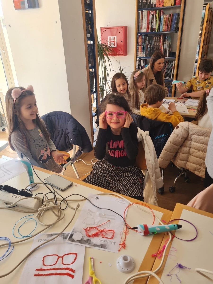 Djeca su na 2D predlošcima izrađivala 3D naočale, čije su dijelove odlijepili od papira i spajali te ih takve isprobavali i zadovoljno ponijeli kućama. Ove radionice doprinijele su razvoju motoričkih vještina i kreativnosti djece. Osim toga, pružile su priliku da djeca nauče upravljati navedenom vrstom 3D tehnologije, što je dodatno obogatilo njihovo iskustvo i potaknulo razvoj novih vještina. Ova radionica nastavak je dugogodišnje izuzetno dobre suradnje ZTK grada Splita i Gradske knjižnice Marka Marulića.