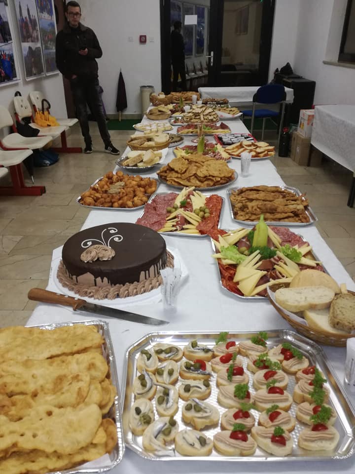 Nakon Izborne Skupštine druženje se nastavilo u predvorju kino dvorane uz Božićni domjenak i planinarsku veselicu u ugodnoj atmosferi uz glazbu uživo. I ovaj put vrijedne članice PD Jelinak su priredile izvrsne kolače i uštipke. Članovi i gosti su mogli pogledati i izložbu fotografija na temu ‘Planinarsko društvo Jelinak Trilj – devetnaest godina na vrhovima planina’.