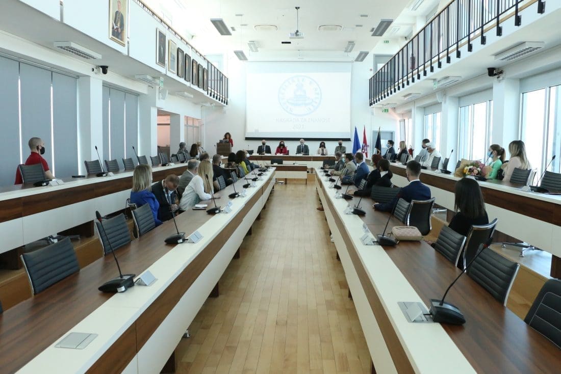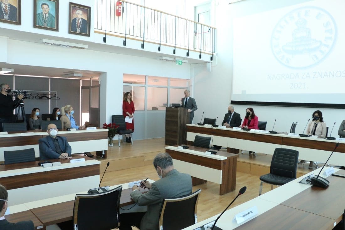 Svečana dodjela Nagrade za znanost Sveučilišta u Splitu za 2021. godinu održana je u četvrtak 24. ožujka, u vijećnici Senata Sveučilišta u Splitu „Don Frane Bulić“. Svečanosti su nazočili rektor Sveučilišta u Splitu prof. dr. sc. Dragan Ljutić, prorektori, prof. dr. sc. Leandra Vranješ Markić, prof. dr. sc. Tomislav Kilić, prof. dr. sc. Đurđica Miletić i prof. dr. sc. Željko Radić, Ivana Pletković, pročelnica Ureda rektora, Tomislav Đonlić, pročelnik Upravnog odjela za prosvjetu, kulturu, tehničku kulturu i sport Splitsko-dalmatinske županije, izaslanik splitsko-dalmatinskog župana Blaženka Bobana, Marina Protić, pročelnica Ureda Grada Splita, izaslanica gradonačelnika Grada Splita Ivice Puljka, članovi akademske zajednice te ostali uvaženi gosti.