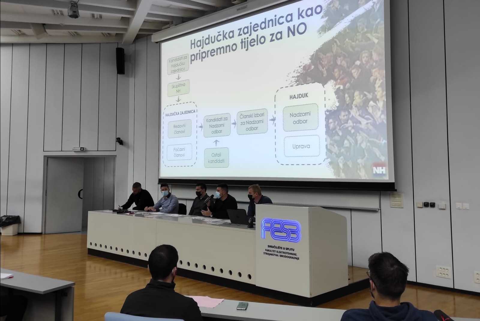 Na Fakultetu elektrotehnike, strojarstva i brodogradnje u Splitu održana je tematska skupština Našeg Hajduka. Na skupštini je izložen prijedlog unapređenja izbornog procesa koji je skupština prihvatila.