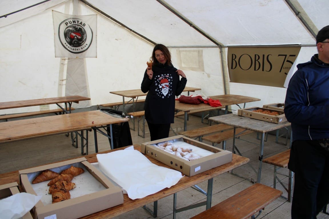 Beach bar Jadran omogućio je svim sudionicima tople napitke te na taj način doprinio ovoj hvalevrijednoj akciji. Također, u prostorijama Beach bara, organizirano je i kratko predavanje o minsko-eksplozivnim sredstvima kako bi se sve sudionike osvijestilo o potencijalnim opasnostima koje se mogu skrivati na morskom dnu. Dok su se za tople obroke i piće pobrinuli Pekara Bobis, Ožujska pivovara i dugogodišnji prijatelj ronilaca hotel Le Meridien Lav.