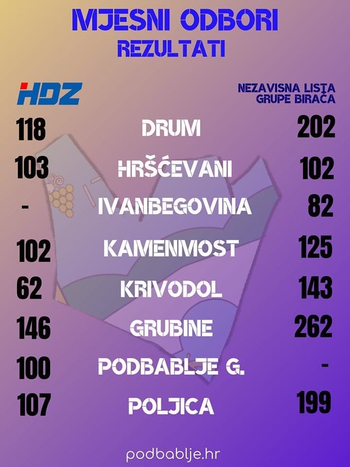 Točne rezultate izbora za mjesne odbore u Podbablju možete vidjeti ovdje: