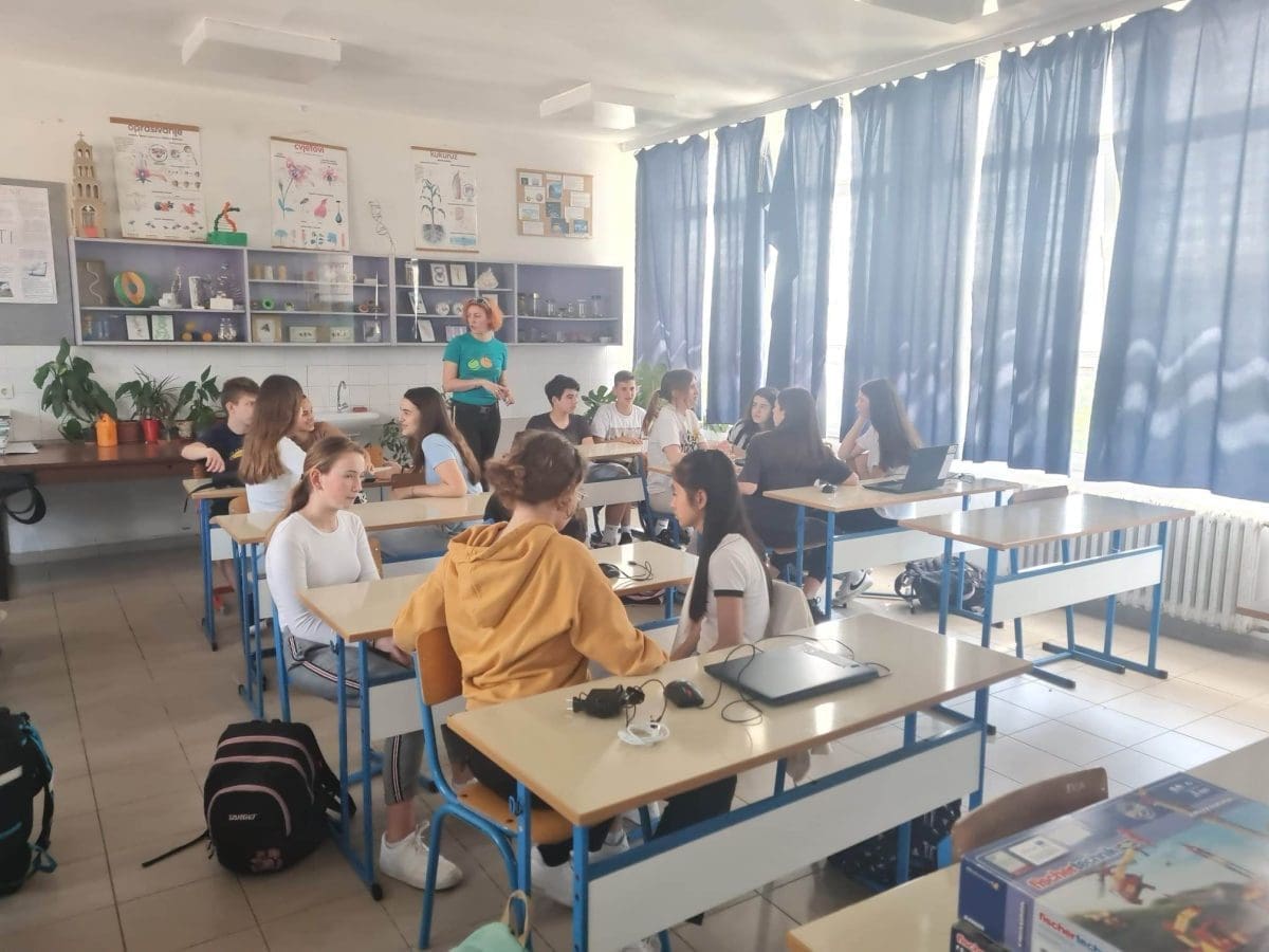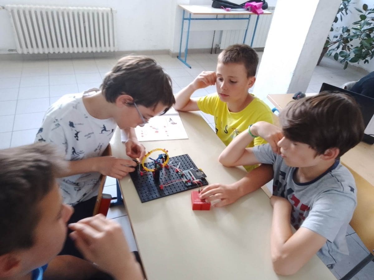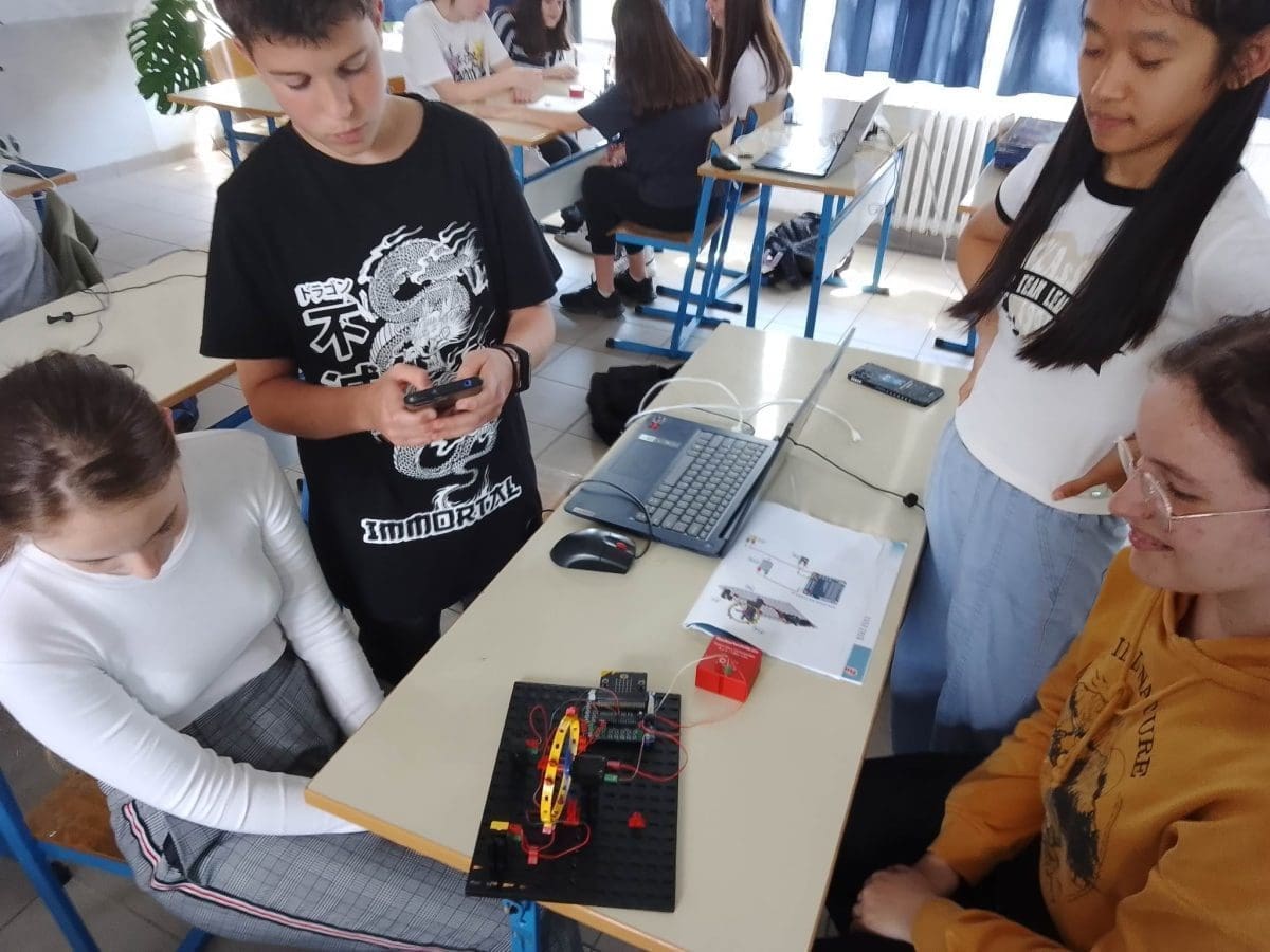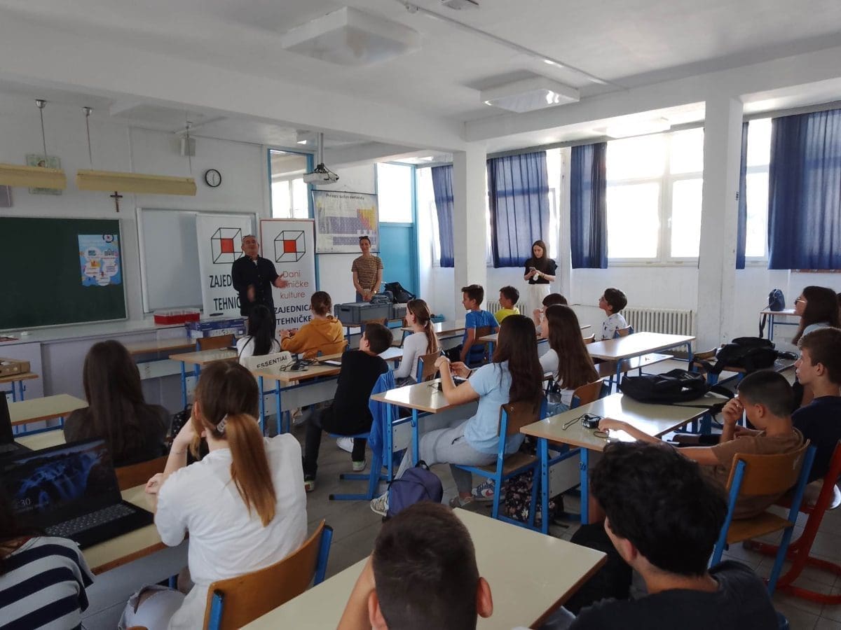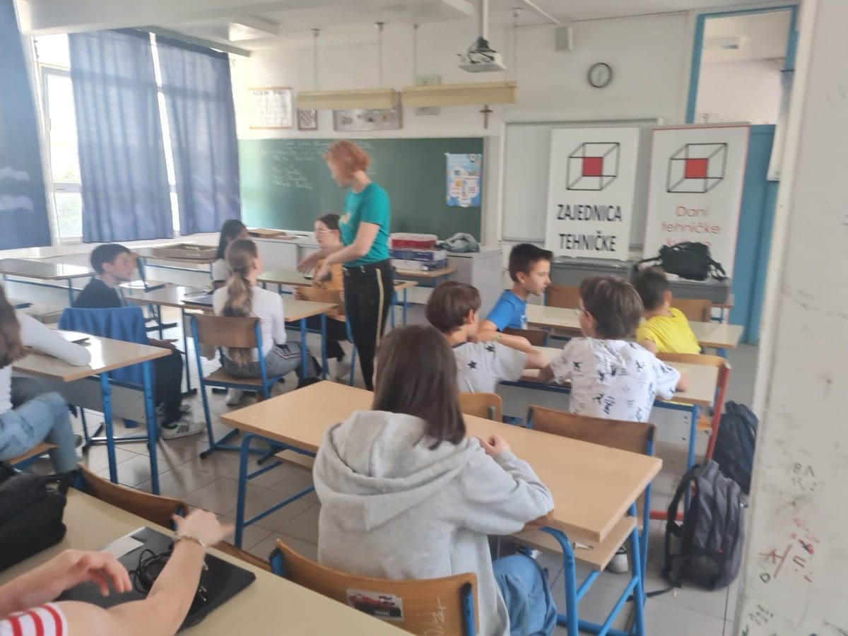 Po završetku uvodnog pozdrava, učenici su se odmah „bacili“ na rad. Radionicu robotike održala je stručna suradnica u Zajednici tehničke kulture grada Splita, Ella Rinčić. U sklopu radionice, učenici su se upoznali s pojmovima iz područja mehanike, elektronike i programiranja. U skupinama su podijelili zadatke (konsturiranje, programiranje, povezivanje sa sučeljem, izrada vodiča) iz navedenih područja te su u konačnici samostalno izradili automatizirana sušila za ruke (primjer uređaja koji objedinjuje sve navedeno). Radionica robotike ostvarila je zacrtane ishode, a učenici su ponosno otišli svojima kućama!