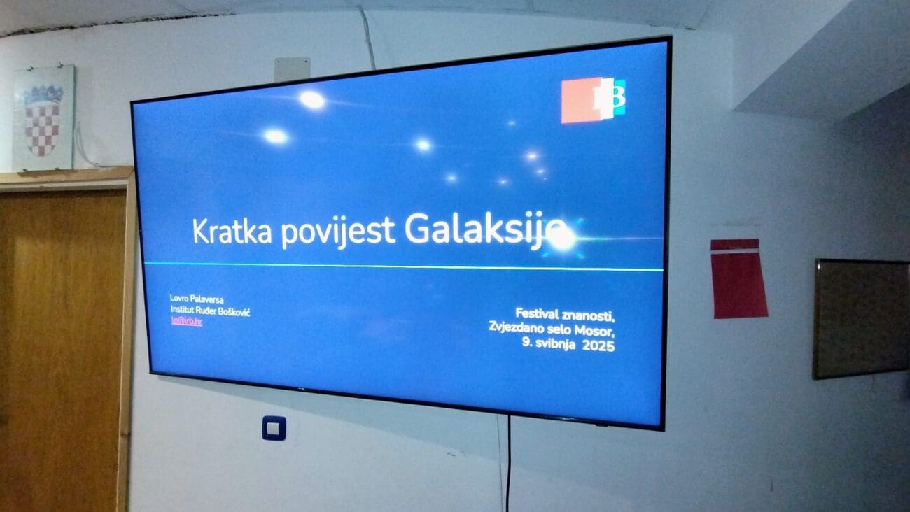 Kako je bilo i najavljeno, u velikoj dvorani zvjezdarnice Zvjezdanog sela Mosor u Gornjem Sitnom je u petak, 9. svibnja, u sklopu ovogodišnjeg Festivala znanosti kojega je organiziralo Sveučilište u Splitu, održano znanstveno-popularno predavanje pod nazivom "Kratka povijest galaksije". O povijesti istraživanja naše galaksije Mliječnog Puta, vrstama galaksija koje vidimo u svemiru i procesima koji se u njima odvijaju, govorio je dr. sc. Lovro Palaversa, viši znanstveni suradnik u Laboratoriju za Astrofiziku i astročestičnu fiziku Zavoda za eksperimentalnu fiziku Instituta Ruđer Bošković u Zagrebu.