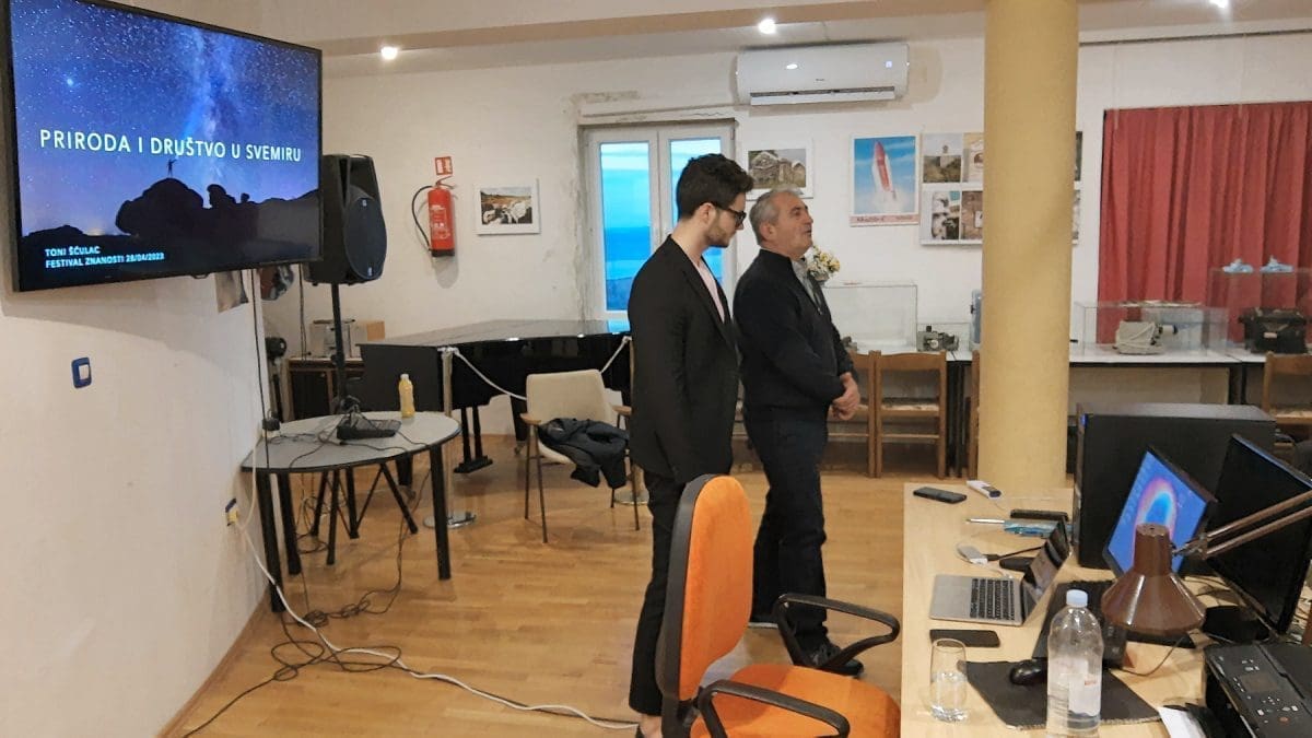U sklopu ovogodišnjeg Festivala znanosti kojega organizira Sveučilište u Splitu, u velikoj dvorani zvjezdarnice u Gornjem Sitnom je ovog petka (28. travnja) održano predavanje pod nazivom "Priroda i društvo u Svemiru".