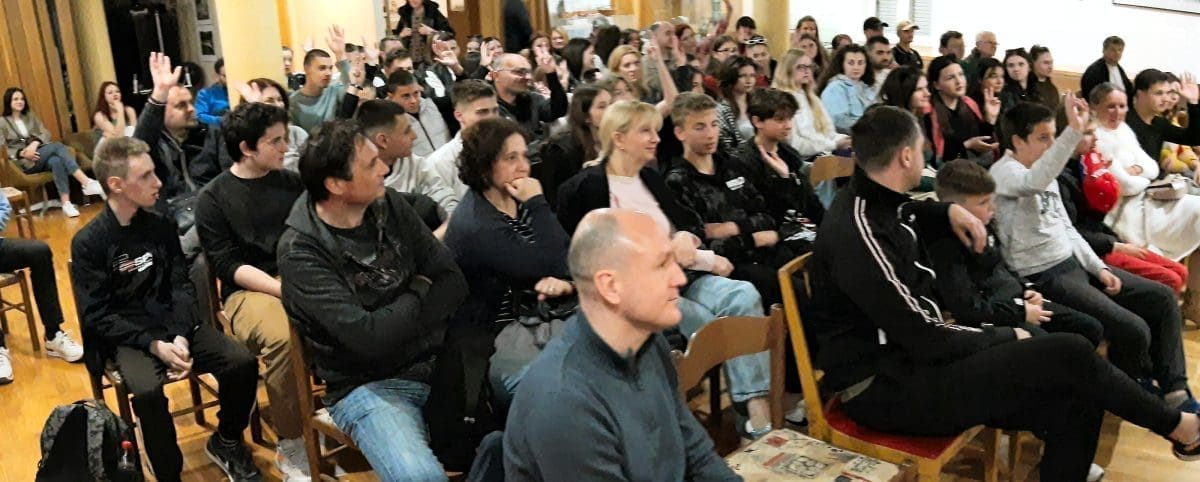 Održao ga je dr. Toni Šćulac, profesor fizike na splitskom Prirodoslovno-matematičkom fakultetu. Među stotinjak zainteresiranih građana u dobro popunjenoj dvorani su se našli su i đaci osnovne škole iz Trogira, te srednje škole iz Knina! Po završetku predavanja, prisutni su zatrpali dr. Šćulca brojnim pitanjima o svemiru, velikom prasku, crnim rupama...