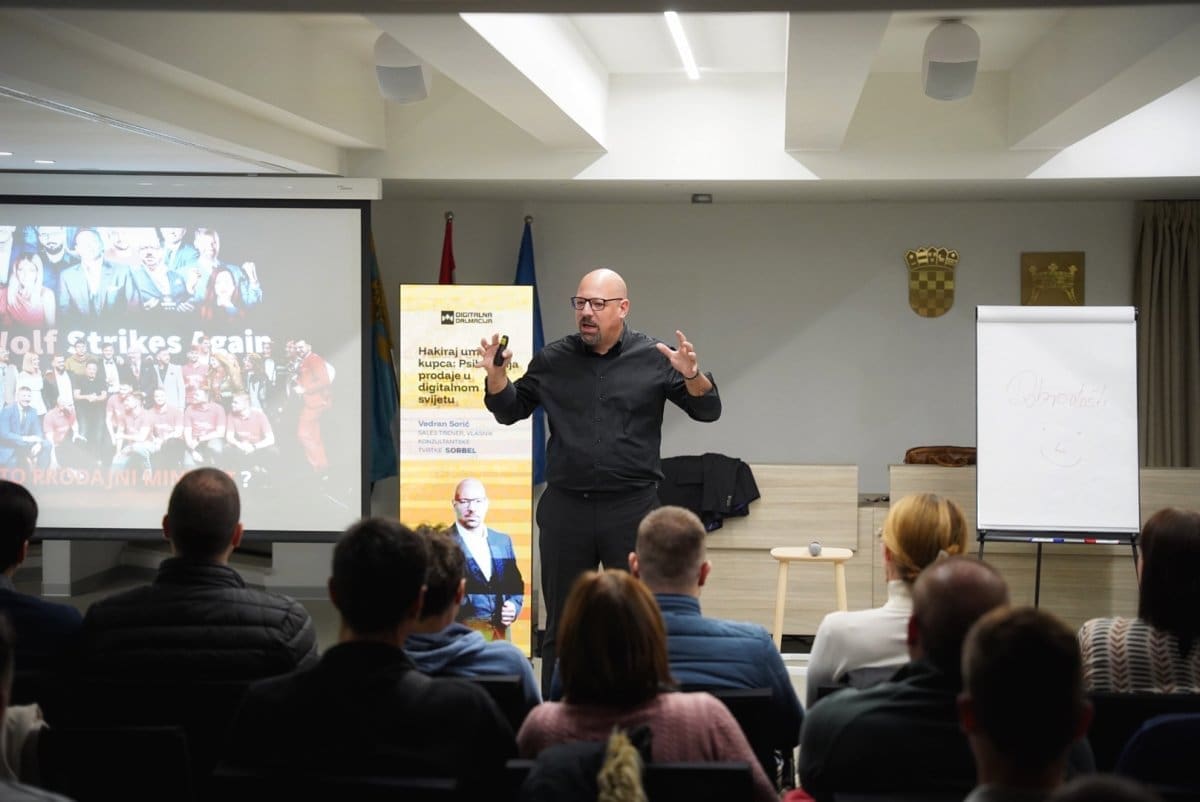 Županijski tehnološki hub Digitalna Dalmacija istaknuo se još jednom kao ključno mjesto edukacije i povezivanja zajednice, ugostivši prodajnog stručnjaka Vedrana Sorića s predavanjem „Hakiraj um kupca – Psihologija prodaje u digitalnom svijetu“. Predavanje, koje je izazvalo ogroman interes lokalne zajednice, oborilo je rekord posjećenosti huba sa skoro 100 sudionika, samo dva mjeseca nakon njegovog svečanog otvorenja.