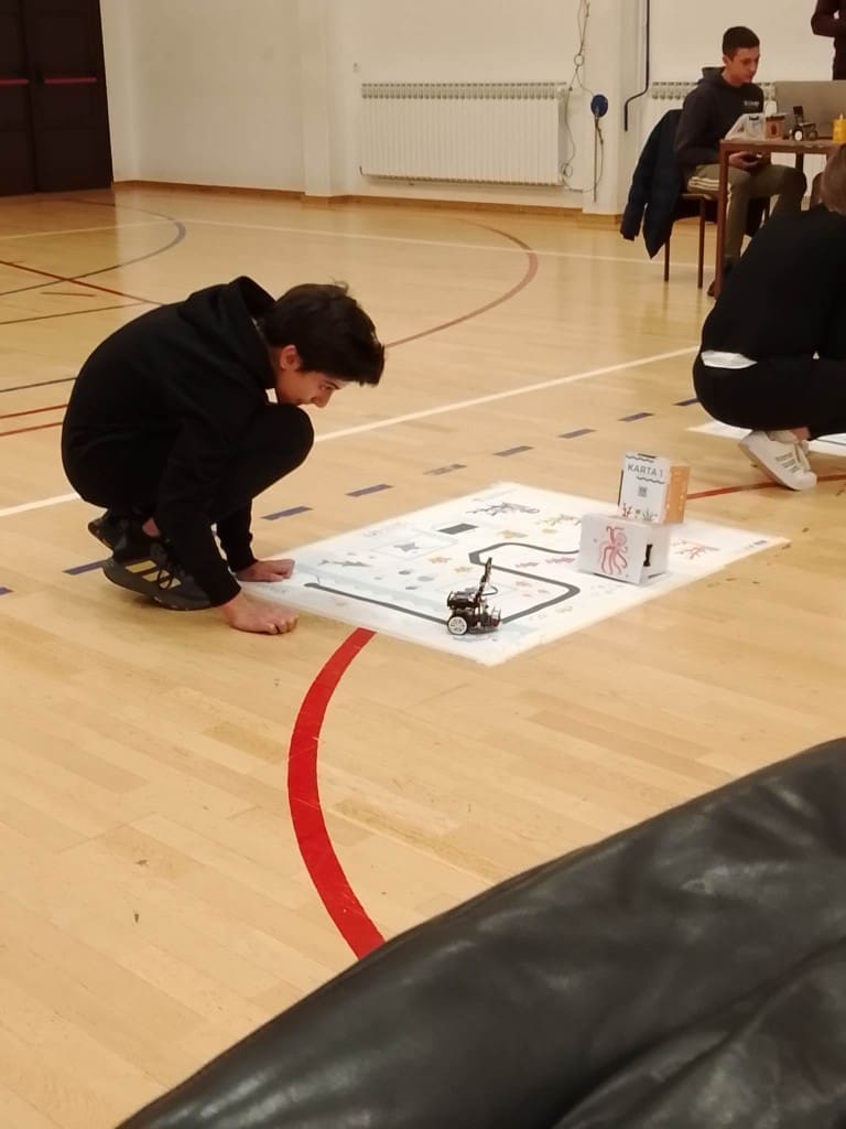 Zadatak za učenike osmišljen je na način da programiraju micro:Maqueen robot da korištenjem senzora (senzora za praćenje linije i ultrazvučnog senzora) izvrši zadatke na karti predviđenoj za natjecanje. S obzirom da su se u sklopu navedenog kola donirale i HUSKYLENS kamere, na kraju zadatka učenici su trebali podesiti kameru na način da prepoznaje dvije različite oznake (Karta 1 ili 2), te na temelju identificirane oznake izvrši zadatak (npr. ukoliko robot prepozna Kartu 1 skreće ulijevo, zaustavlja se i pali zelene RGB diode).