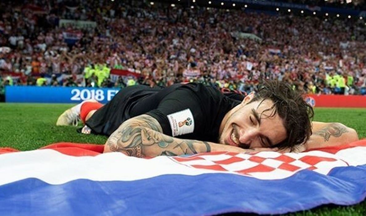 Radi se o već opjevanoj fotografiji sa Šimom Vrsaljkom u glavnoj ulozi, koji je nakon pobjede "Vatreni" nad Engleskom s euforičnim osmijehom na licu legao na travu i položio glavu na hrvatsku zastavu te tako proslavio ulazak u finale Svjetskog prvenstva.