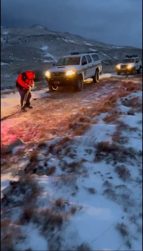 Spašavatelji su konačno u 17 sati i 45 minuta stigli do zametenog vozila i uz pomoć vitla ga izvukli iz nezavidne situacije. Nakon toga su vozilo s putnicima dopratili do podnožja planine.