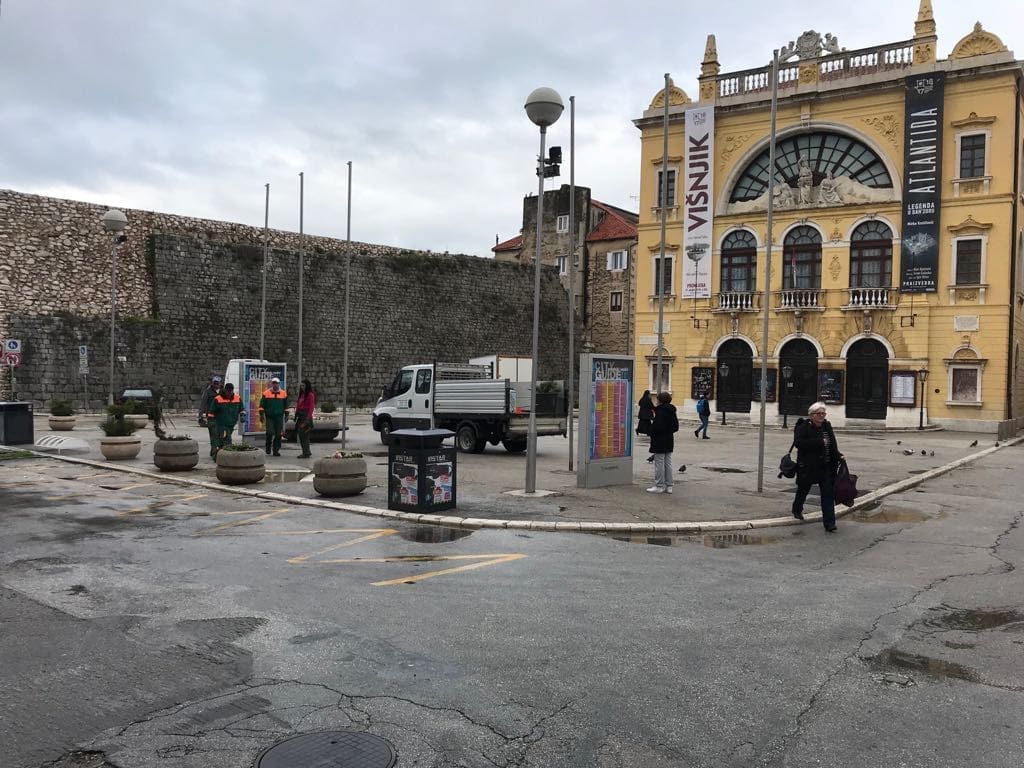 - Gradonačelnik je dao nalog da se ogradi prostror trga kako na njega više ne bi ulazili neodgovorni vozači automobila, autobusa, pa i kamiona. Ovo je privremeno rješenje, a u planu je konačno uređenje ovoga važnoga prostora kojeg osim teatra omeđuje crkva Gospe od zdravlja, kuća Jelaska i bedem.