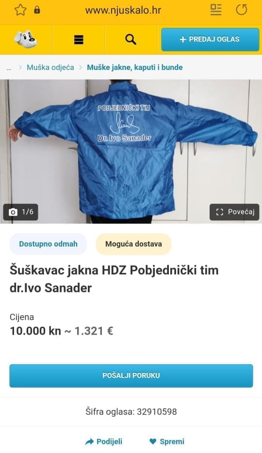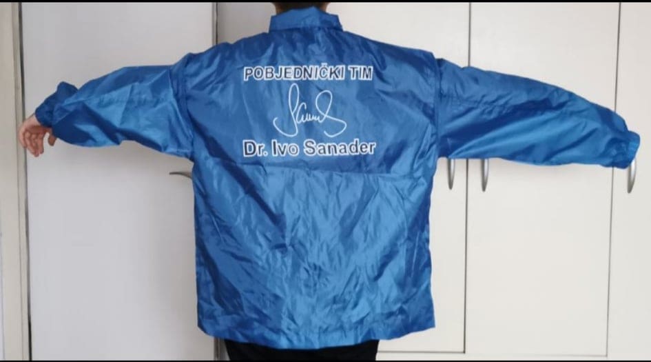 Naizgled nimalo neobičan oglas, no radi se o šuškavcu koji na sebi nosi natpis “Pobjednički tim dr. Ivo Sanader“, a prodaje se za 10.000 kuna.