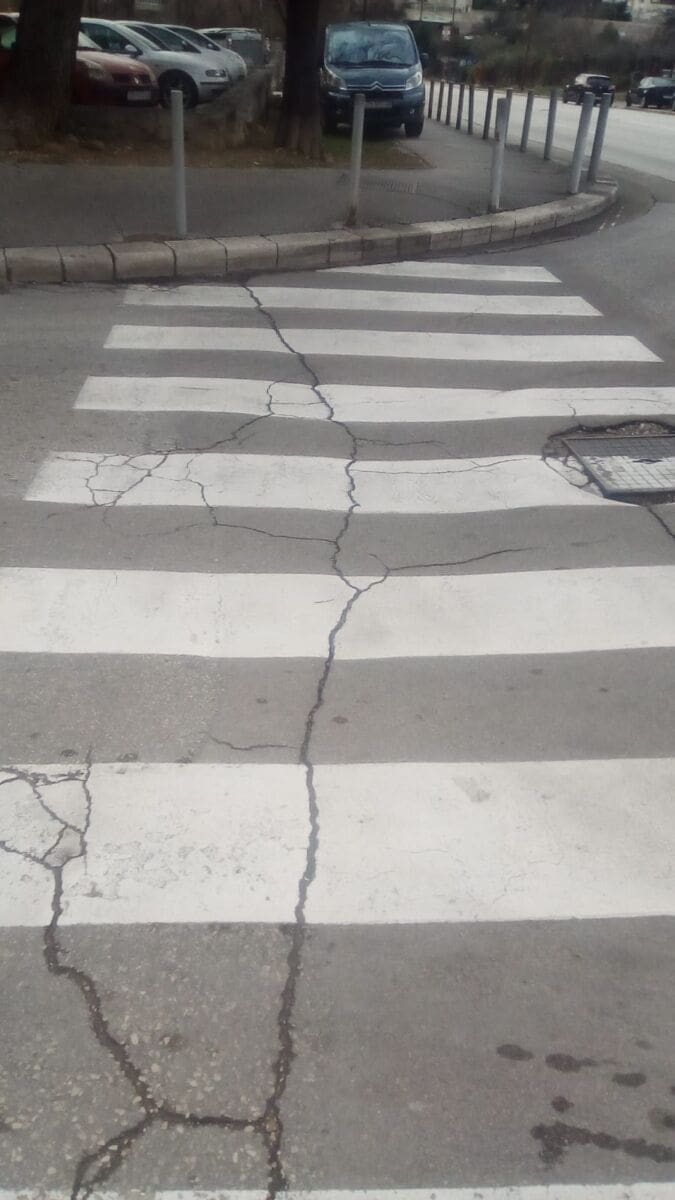 Nadamo se da će nadležna služba reagirati i sanirati asfalt na ovom prijelazu.