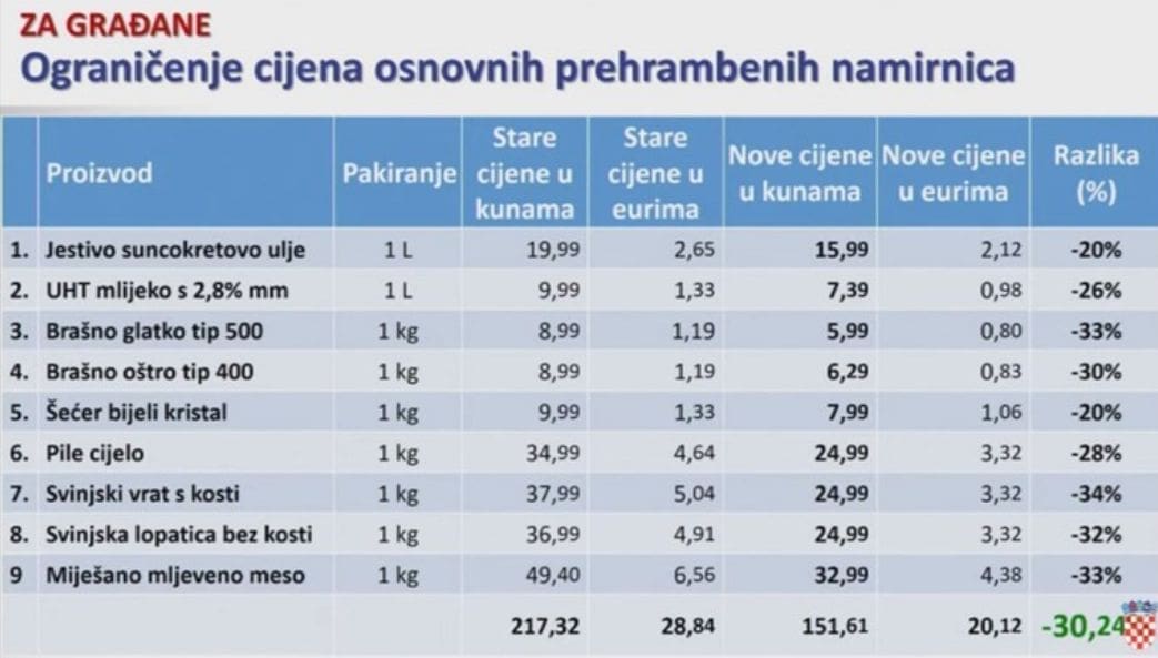 Premijer Andrej Plenković je na sjednici vlade objavio cijene kojih proizvoda će biti fiksirane i na koju cijenu.