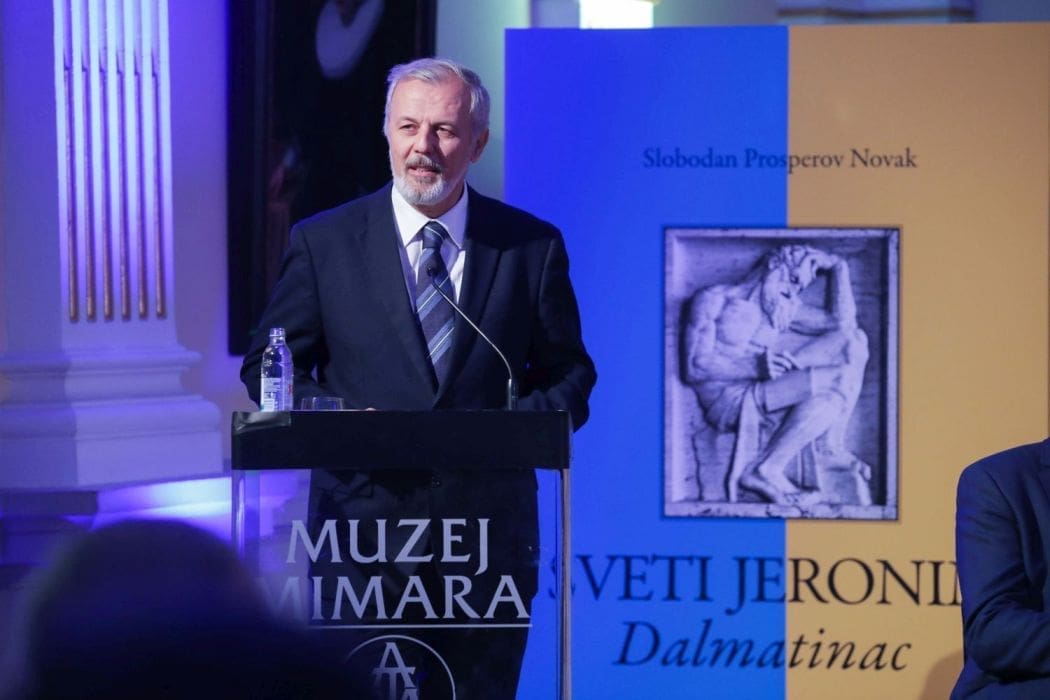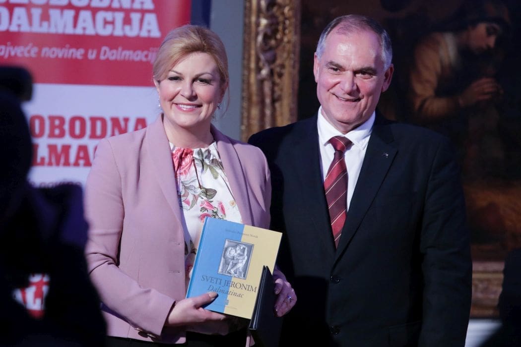 -Žao mi je što nisam čula uvažene predstavljače, sve sudionike ovoga lijepog događaja, u čast Dalmatinca koji je bio jedan od najvažnijih protagonista povijesti kršćanske civilizacije poput našeg Ivana Meštrovića. Moram reći da je skulptura sv. Jeronima ispred veleposlanstva u RH originalni rad Ivana Meštrovića, sada u prilično lošem stanju – kazala je predsjednica te još jednom apelirala za obnovu ovoga vrijednog umjetničkog djela, koje je zbog svoga značaja, ucrtano i na turističkoj karti Washingtona, D. C. – Današnje predstavljanje knjige i sama knjiga su povod da se Hrvatska cijelom svijetu predstavi i potvrdi kao Domovina svetog Jeronima, a mi kao Jeronimovi zemljaci, baštinici njegova velebnog djela, čega su vrlo dobro bili svjesni naši preci. Hvala autoru i predstavljačima knjige što su omogućili da Jeronim lik i njegovo djelo predstavimo široj javnosti te obnovimo naše znanje i podsjetimo širu europsku javnost na njegovu važnost u povijesti naše zajedničke baštine. Naša Dalmacija je rasadnik znanja i kreativnosti, ljudi koji su stoljećima stvarali nacionalnu kulturu, znanost i umjetnost. Ponosna na svaki kraj naše Domovine, nastavit ću raditi na promociji naše kulture sjajni domaćini europskim čelnicima kojima ćemo se predstaviti svojim nacionalnim identitetom i svime čime smo stoljećima ugrađivali u zajednički europski identitet, ponosni na svetog Jeronima i sve ljude koji su tomu dali svoj nemjerljiv doprinos – kazala je predsjednica Kolinda Grabar Kitarović.