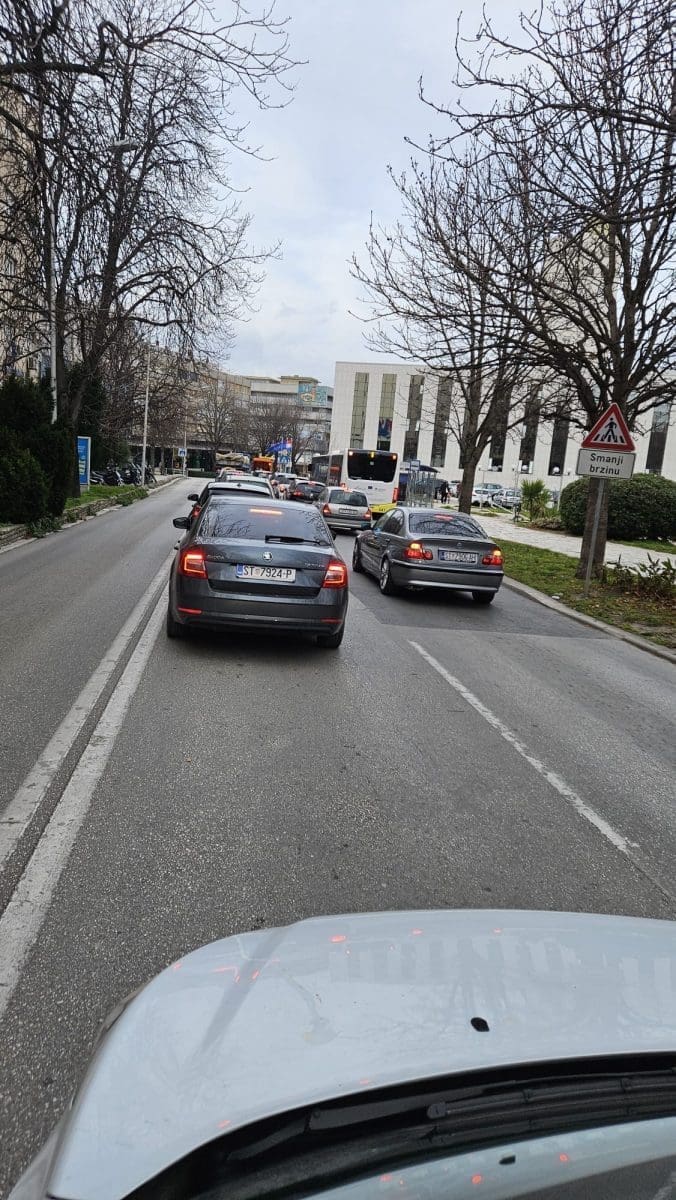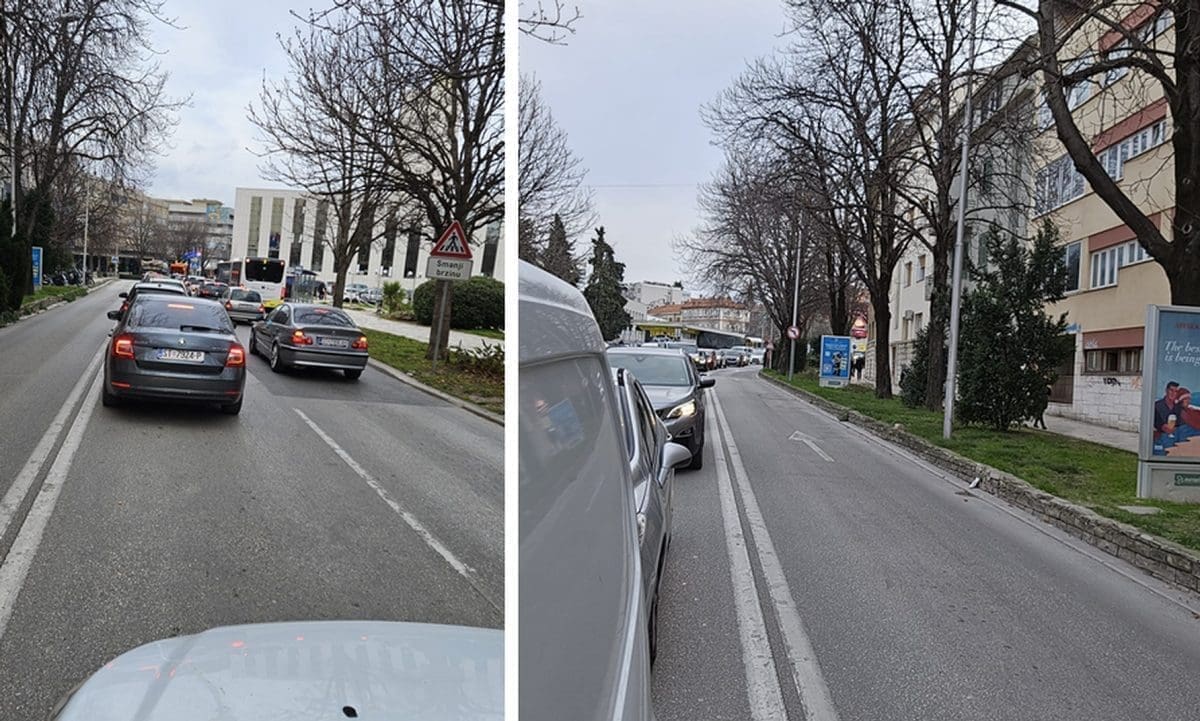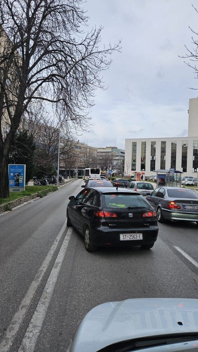 Velika je gužva u Gundulićevoj ulici u Splitu. Velika kolona vozila protezala se od raskrižja s Mažuranićevim šetalištem, pa sve do sretanja za Stari plac.