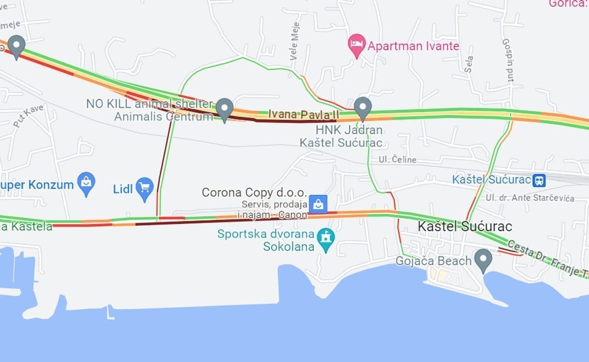 U ovim trenutcima se prometuje usporeno i uz velike poteškoće, pa se vozači mole za oprez i strpljenje. Napomenimo na kraju i da je i na Google maps aplikaciji zabilježena veća gužva u dijelu Kaštela.