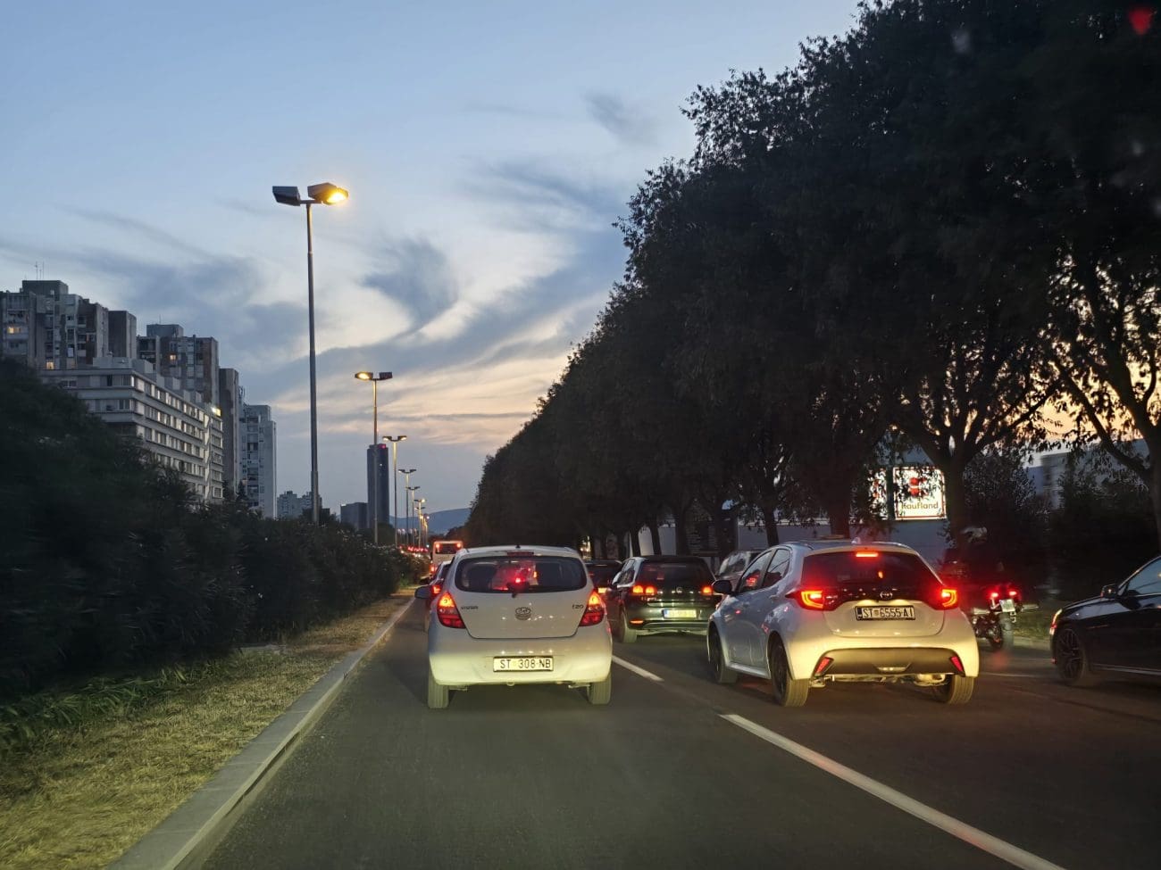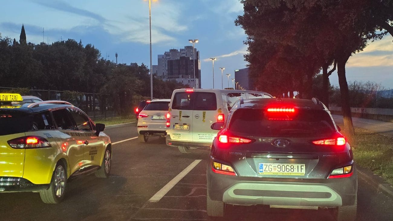 U večernjim satima promet u smjeru centra Splita gotovo je potpuno stao. Fotografija snimljena na prilazu gradu pokazuje dugu kolonu vozila, među kojima su i brojni taksiji, dostavna vozila i automobili s registarskim oznakama iz cijele Hrvatske i inozemstva.